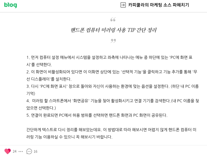 핸드폰 컴퓨터 미러링 초간단 스마트폰 화면 공유 작은 핸드폰 화면을 컴퓨터에 연결해서 크고 시원하게 볼...