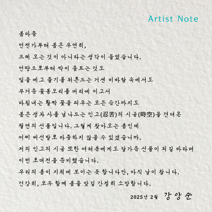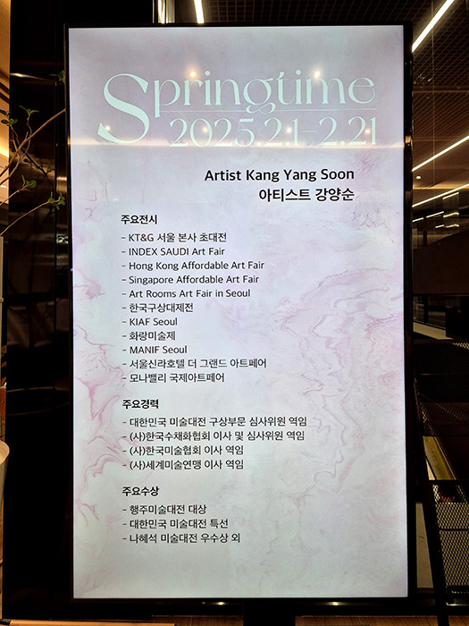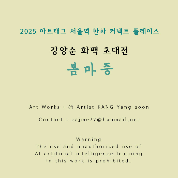 말 그림의 대가(大家) 강양순 화백(畵伯)이 글로벌 아트 & 아티스트 플랫폼 아트태그의 2025년 첫 초대전의 작가로 선정되어 전시현장에 다녀왔습니다.