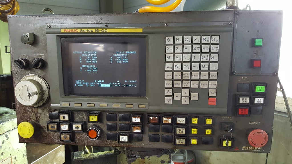 fanuc series 16-GC 미쯔비시 앵귤라연삭기 2005년식 입니다.