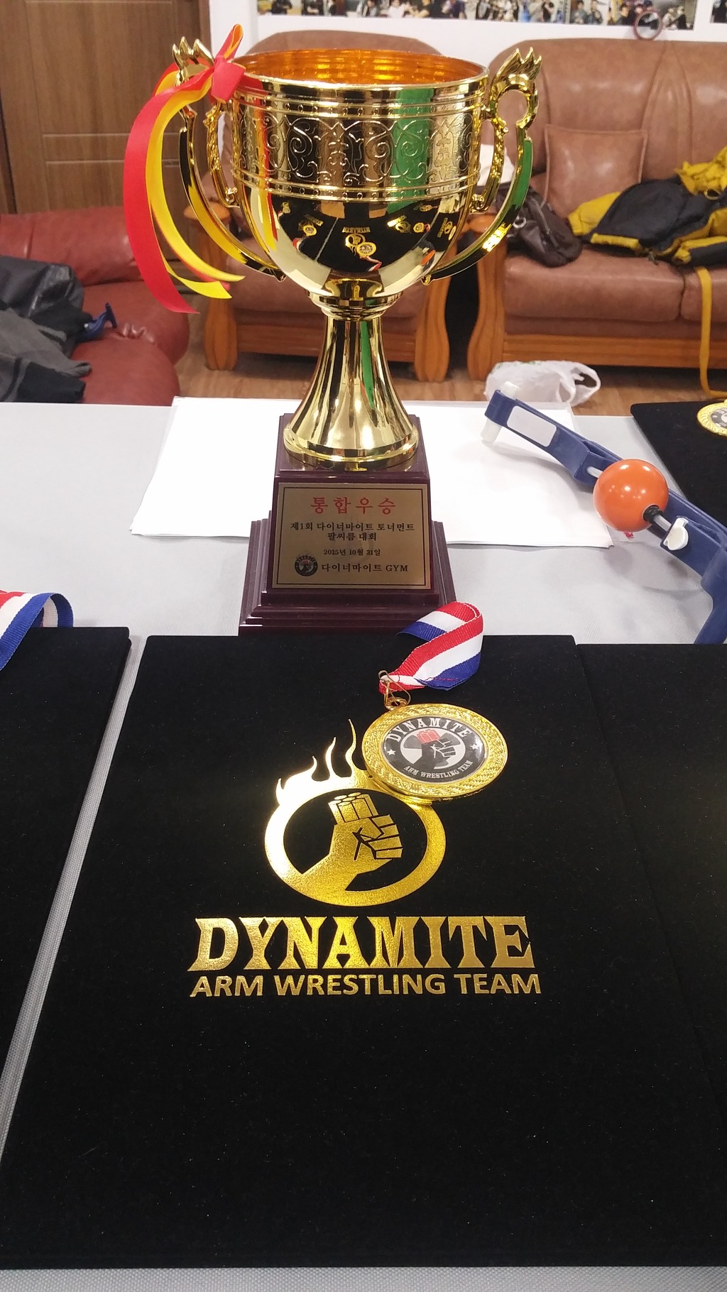 안녕하세요!! 팔씨름입문한지1개월된 23살 변재민이라고 합니다ㅎㅎ오늘 다트 토너먼트대회 성인부로 참가했습니다ㅋㅋ오늘 고속도로가 밀리는바람에 조금늦게 체육관에 도착했습니다 다행히 모든분들께서 환영해주셨고 학생부준결승전을 하고있었습니다 학생부우승은 김성원군!! 엄청빠른 탑롤을보고 놀랬습니다ㅋㅋ그리고 성인부(1승도 못했습니다ㅠㅠ),왼팔전,통합경기 모두끝나고 애프터시간을 가지면서 여러가지많이 가리켜주셨습니다 특히 경남멀리서 오신 주영준형님께서 훅에대해서 조금이나마 진지하게 가리켜주셔서 감사하다고 말씀드리고싶네요!ㅎㅎ김도훈팀장님 정말 수고많으셨고 다트운영진들 고생하셨습니다!! 특히 기범형님 오늘 빵빵터트리면서 퍼포먼스상 축하드리고요ㅋㅋㅋ석규야 다음에 더강해져서 올께!! 다들 수고하셨습니다~~ 다이너마이트 화이팅~♡