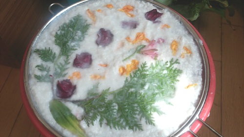 그 위에 말린 나뭇잎이나 꽃잎을 올려 놓으시며 됩니다.