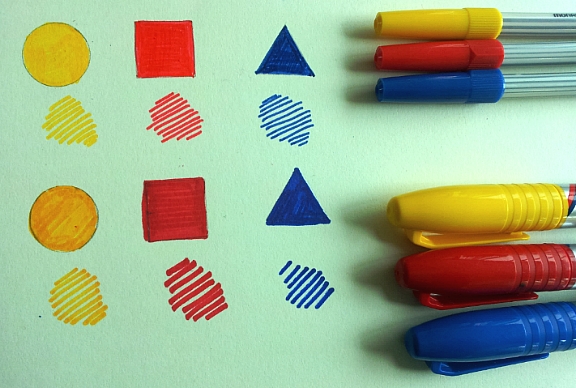 아래 그림은 유성 매직입니다. 굵게 그려지면서 선명하게 칠해 집니다.