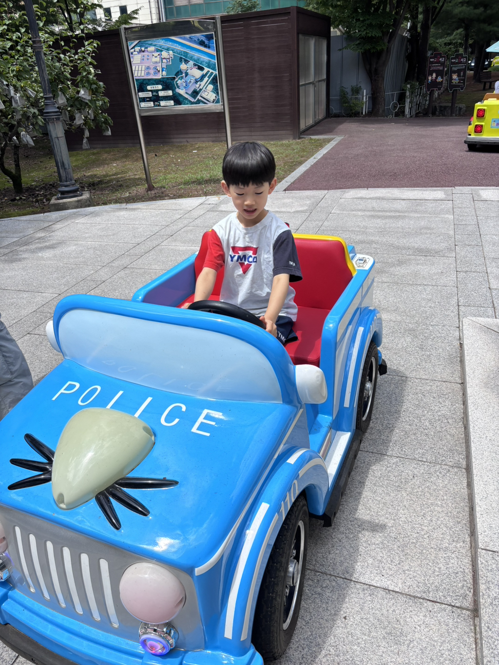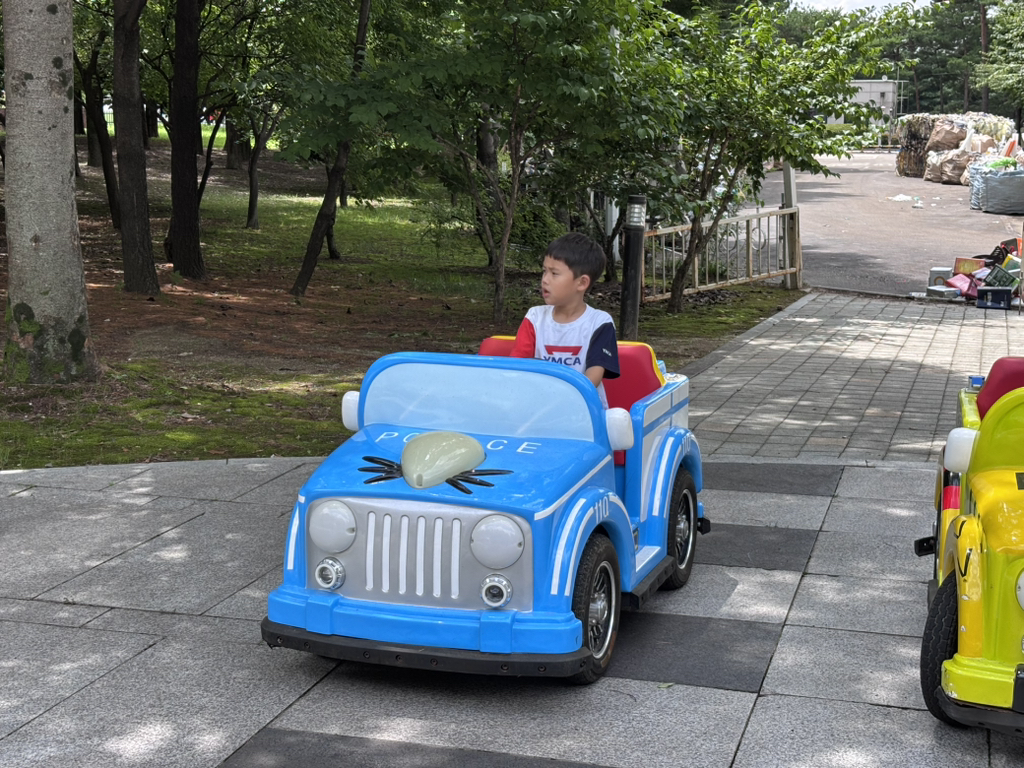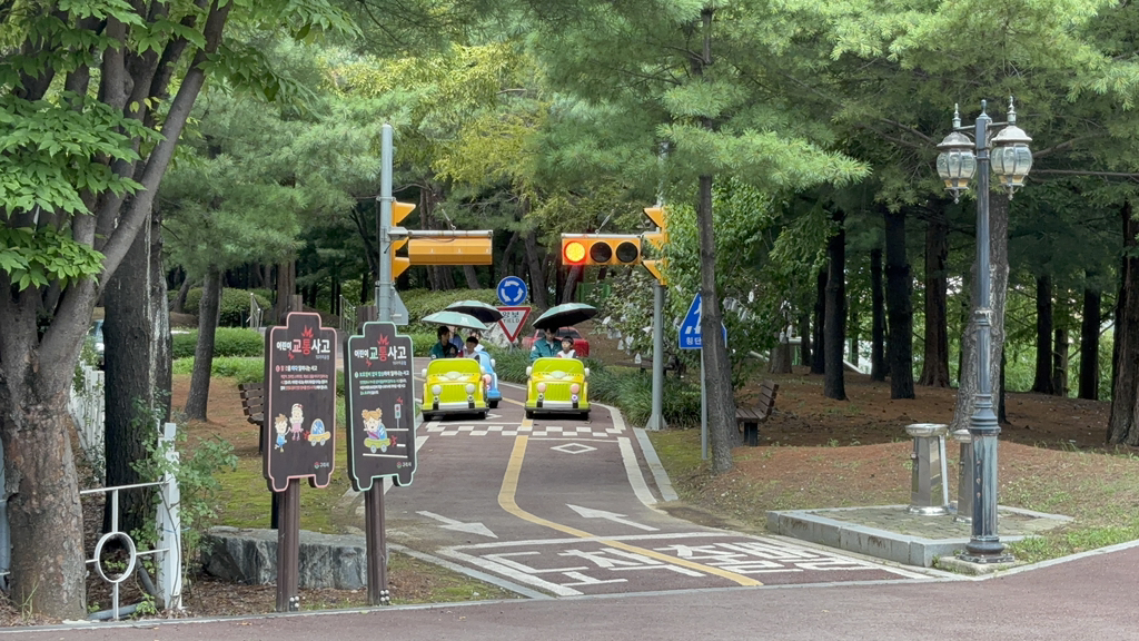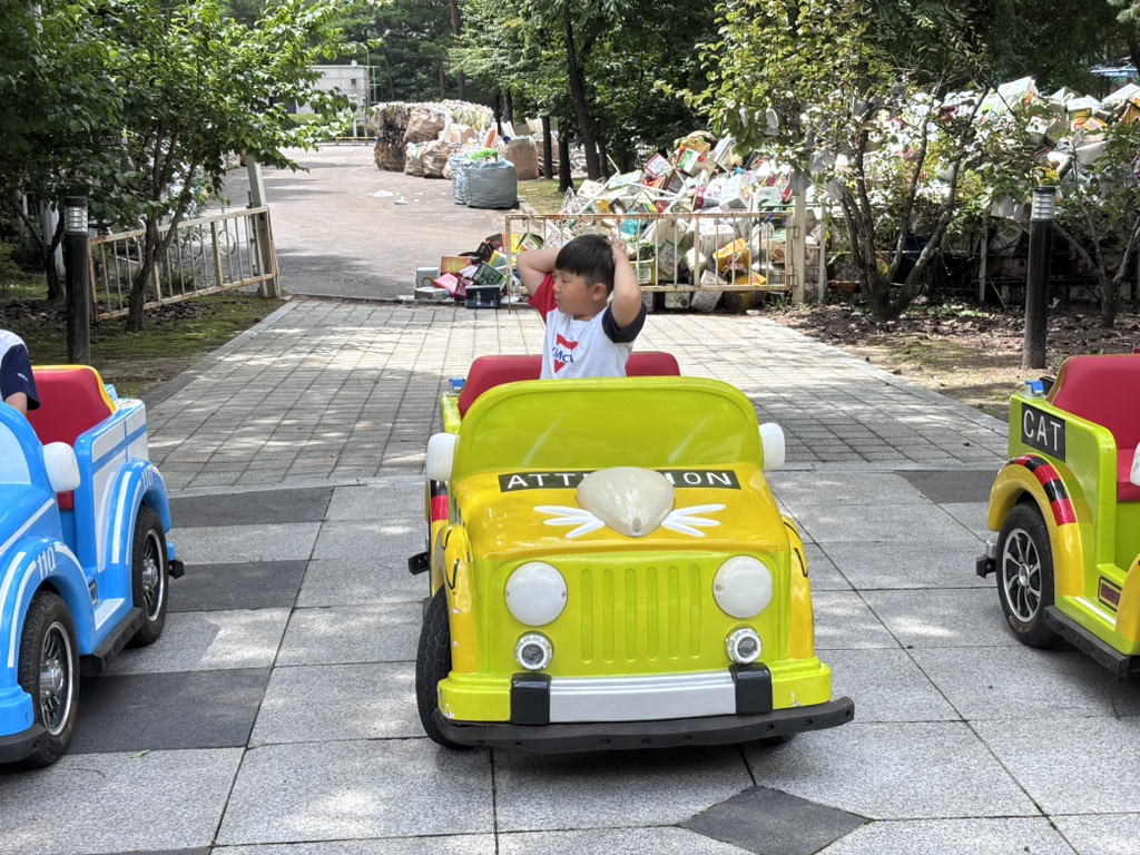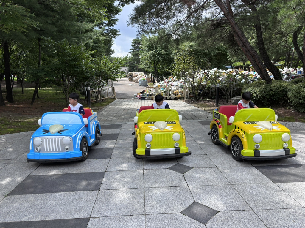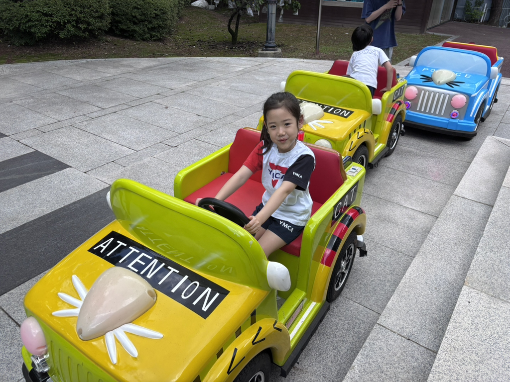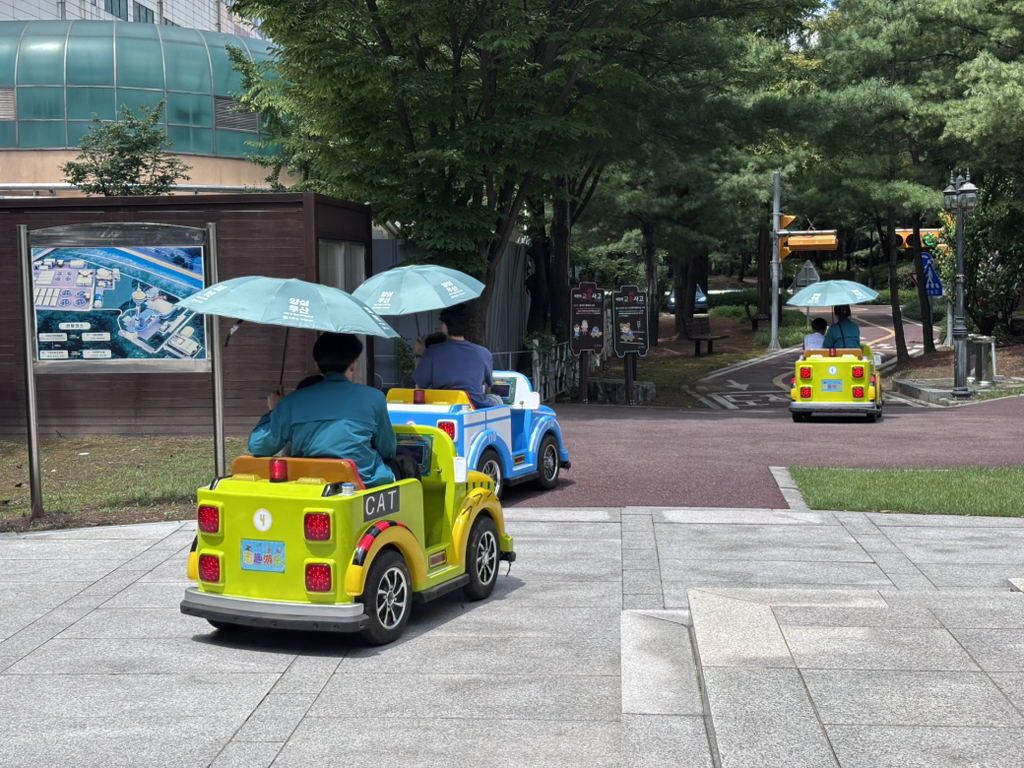 교통안전체험에선 신호를 지키며 직접 핸들로 운전해 보았어요. 이 실력이라면 보험을 단단히 들어 놓는게 좋을 것 같아요~!