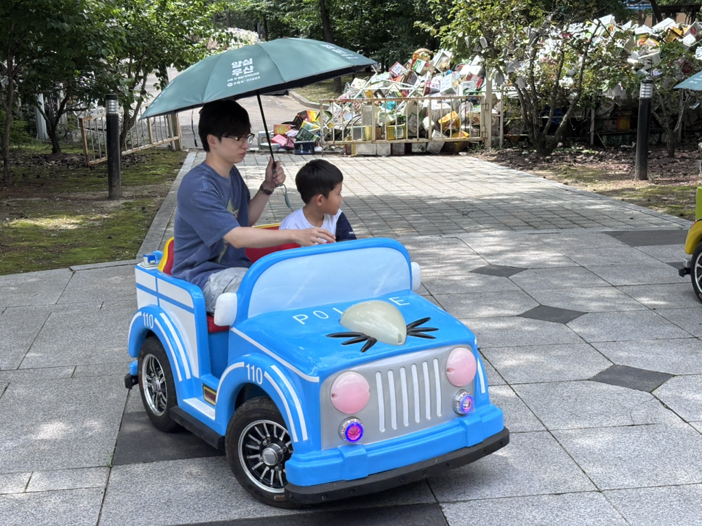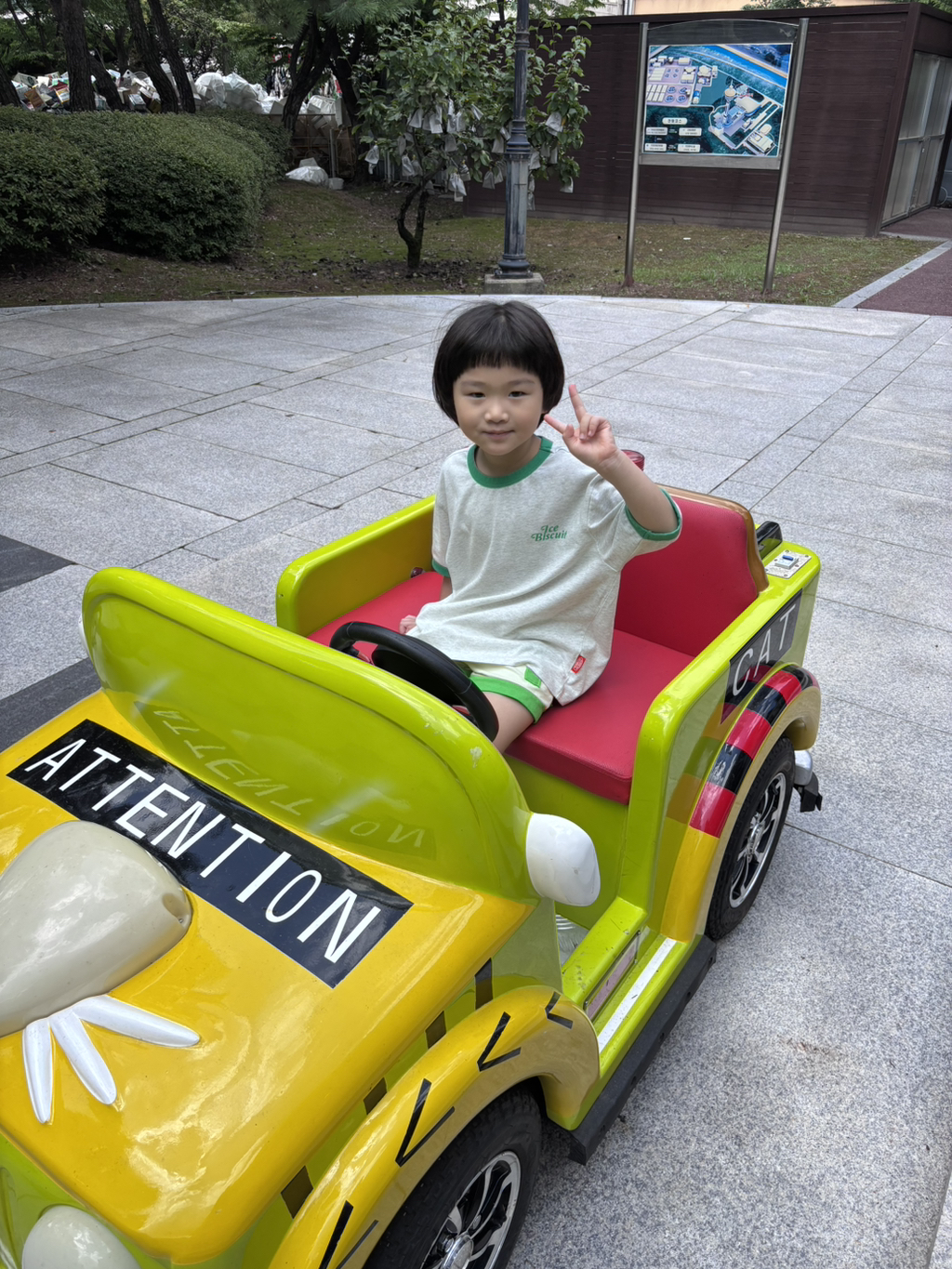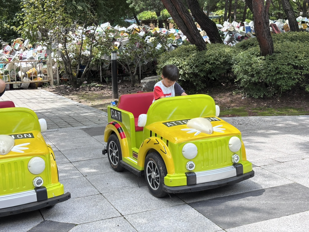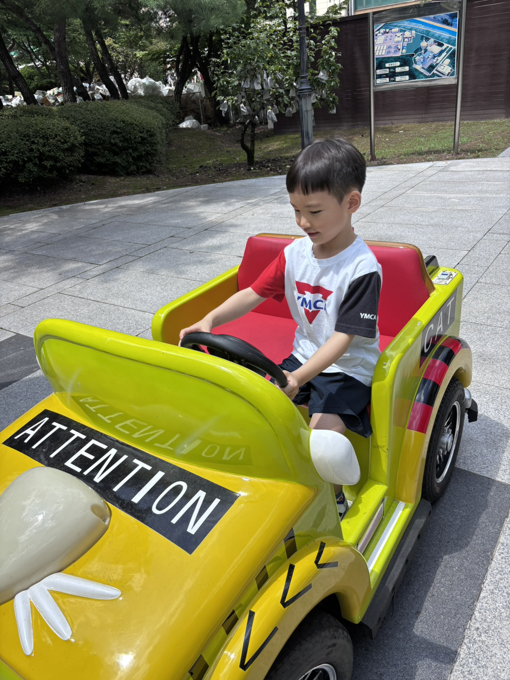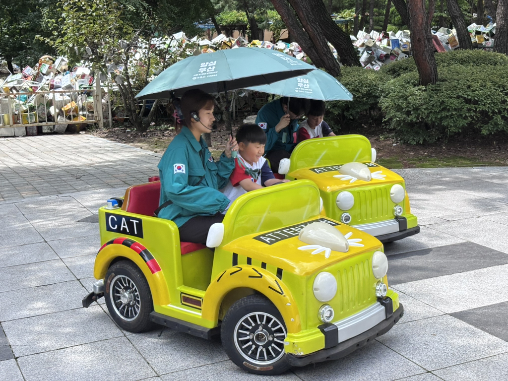 교통안전체험에선 신호를 지키며 직접 핸들로 운전해 보았어요. 이 실력이라면 보험을 단단히 들어 놓는게 좋을 것 같아요~!