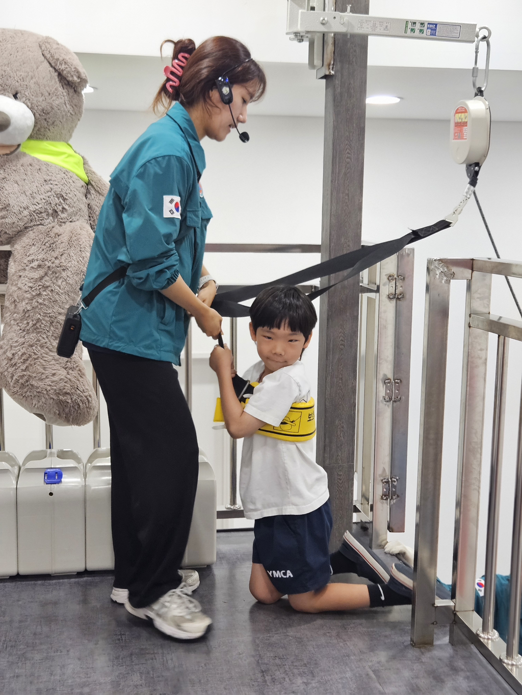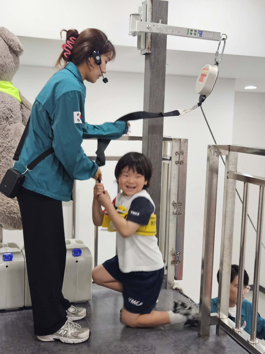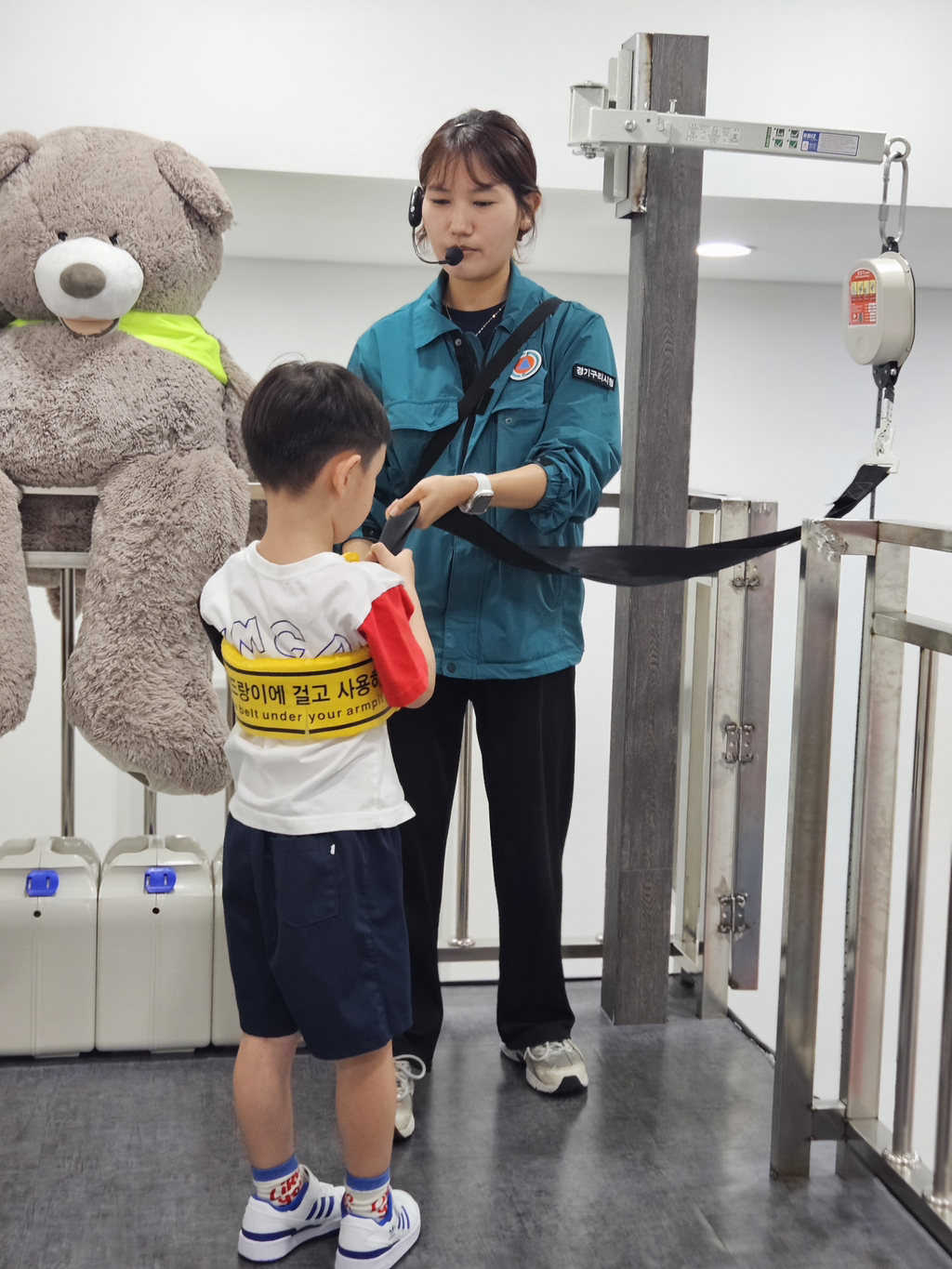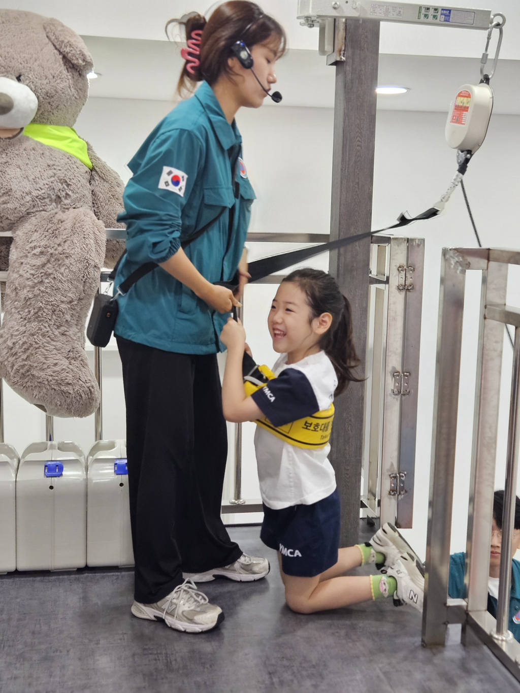 소화기 작동체험에선 소화약제 대신 레이저로 발화지점을 조준해 불도 꺼보고 평소엔 하기 힘든 완강기 체험도 해보았어요.