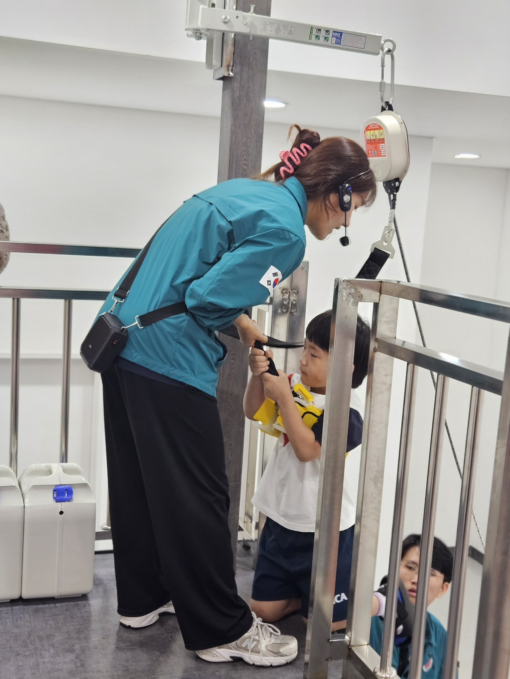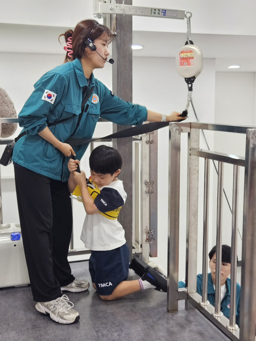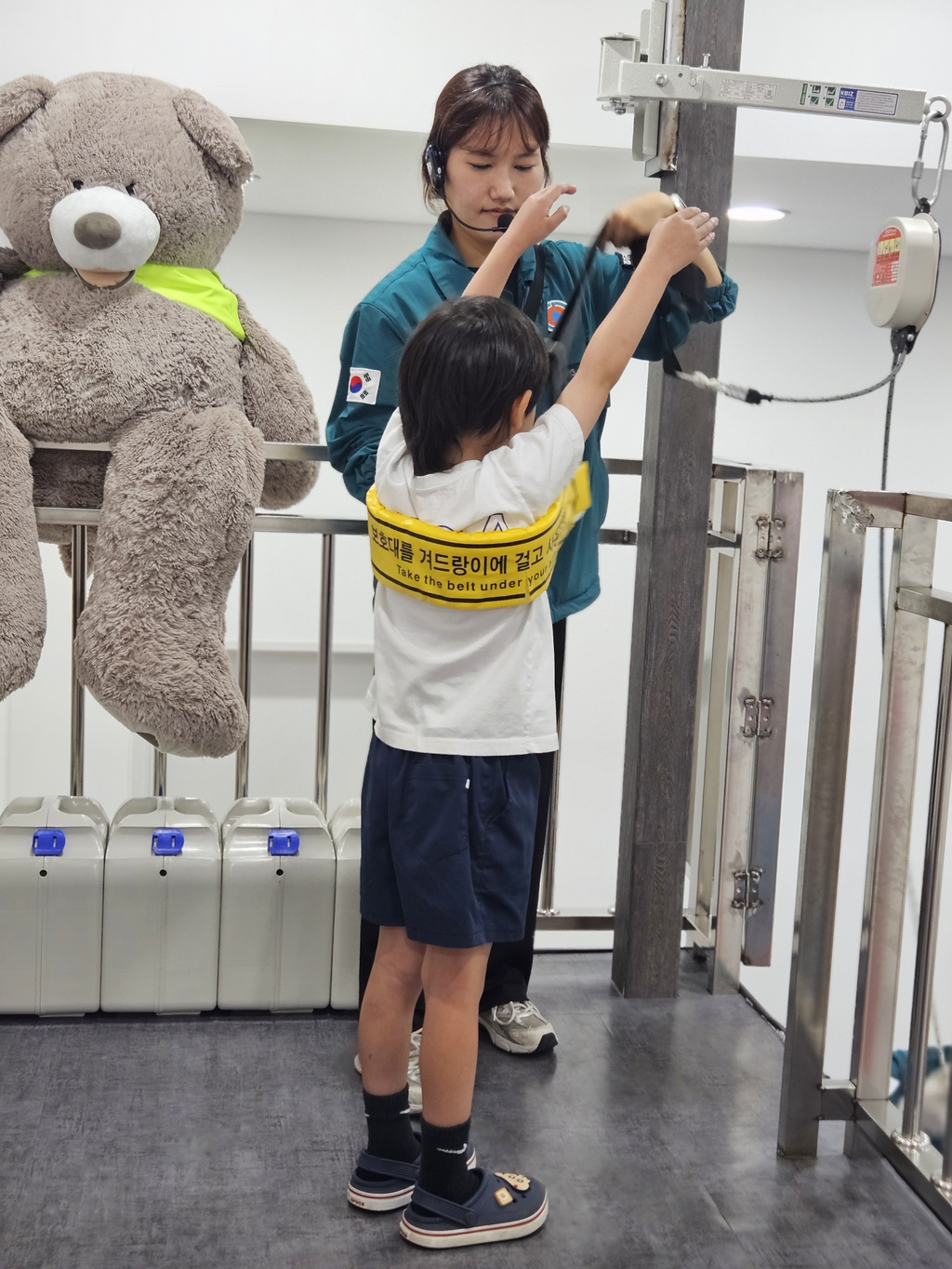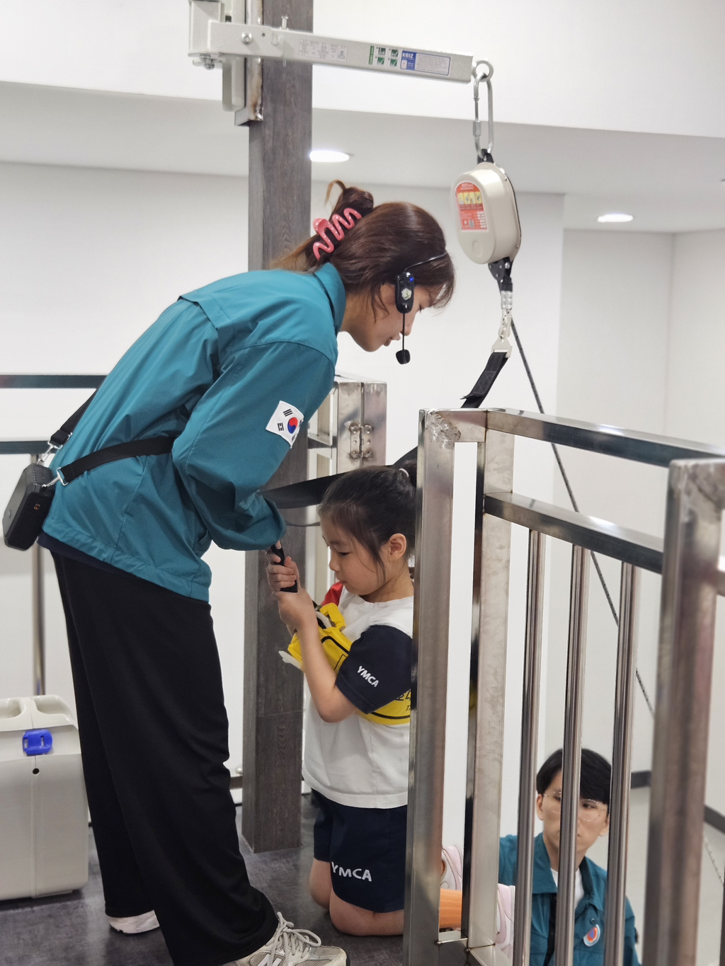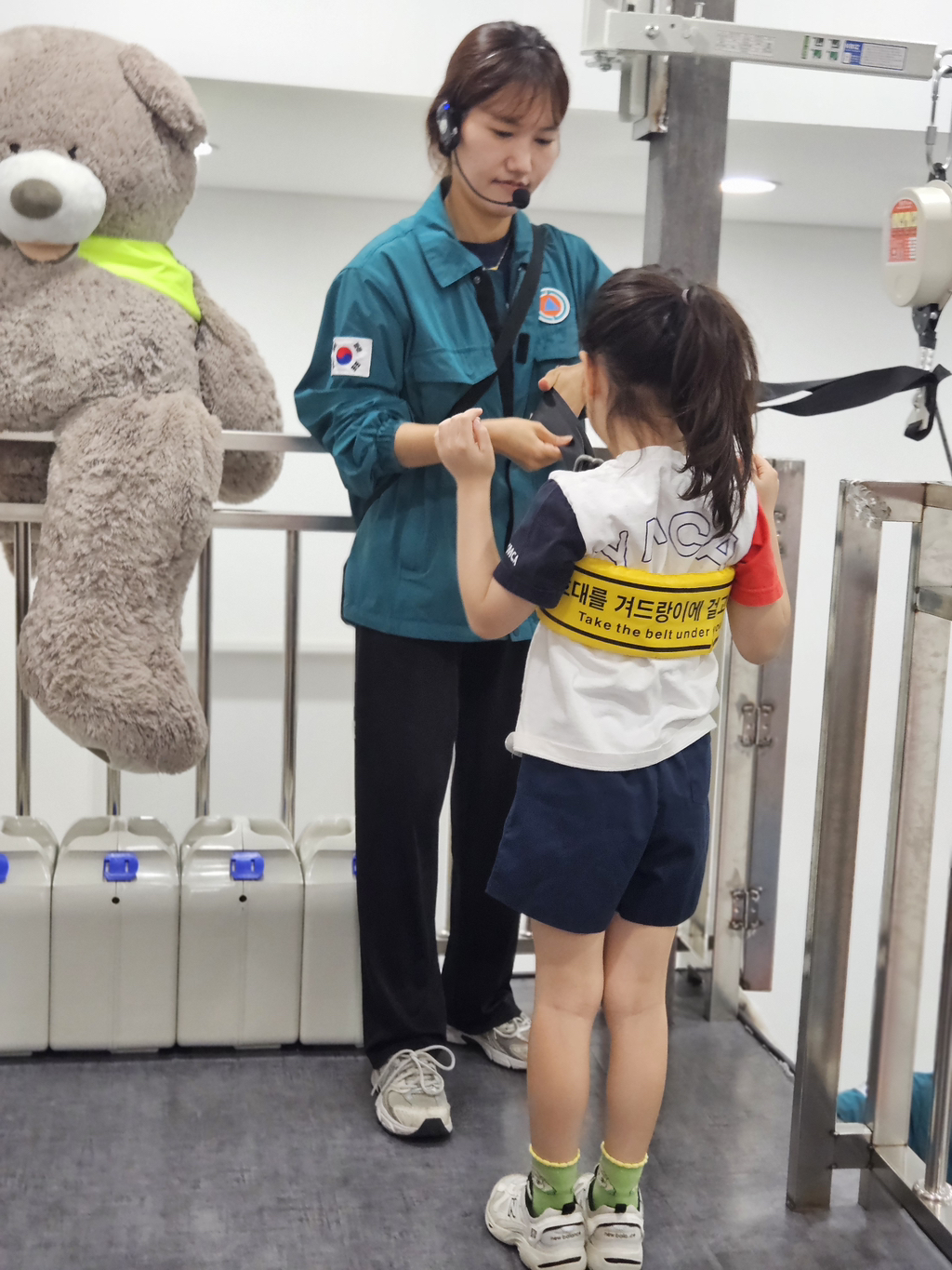 소화기 작동체험에선 소화약제 대신 레이저로 발화지점을 조준해 불도 꺼보고 평소엔 하기 힘든 완강기 체험도 해보았어요.