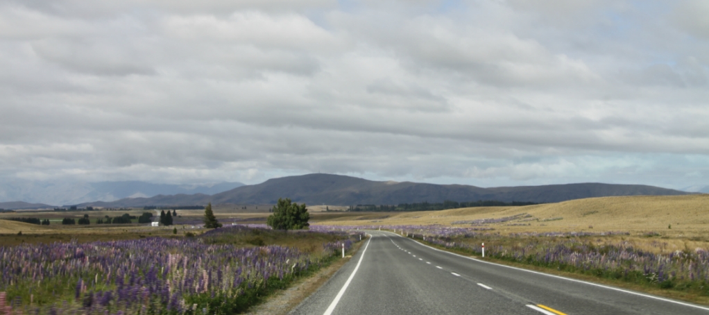 데카포 관광의 기점이 되는 버스 정류장 앞으로 차를 몰아서 다음 목적지 푸카키 호수로 향했다. 초원의 길을 달리는데 날이 맑아져 햇살이 비친다. 초원이 빛이 난다. 11시 정도에 푸카키 호수에 도착했다.
