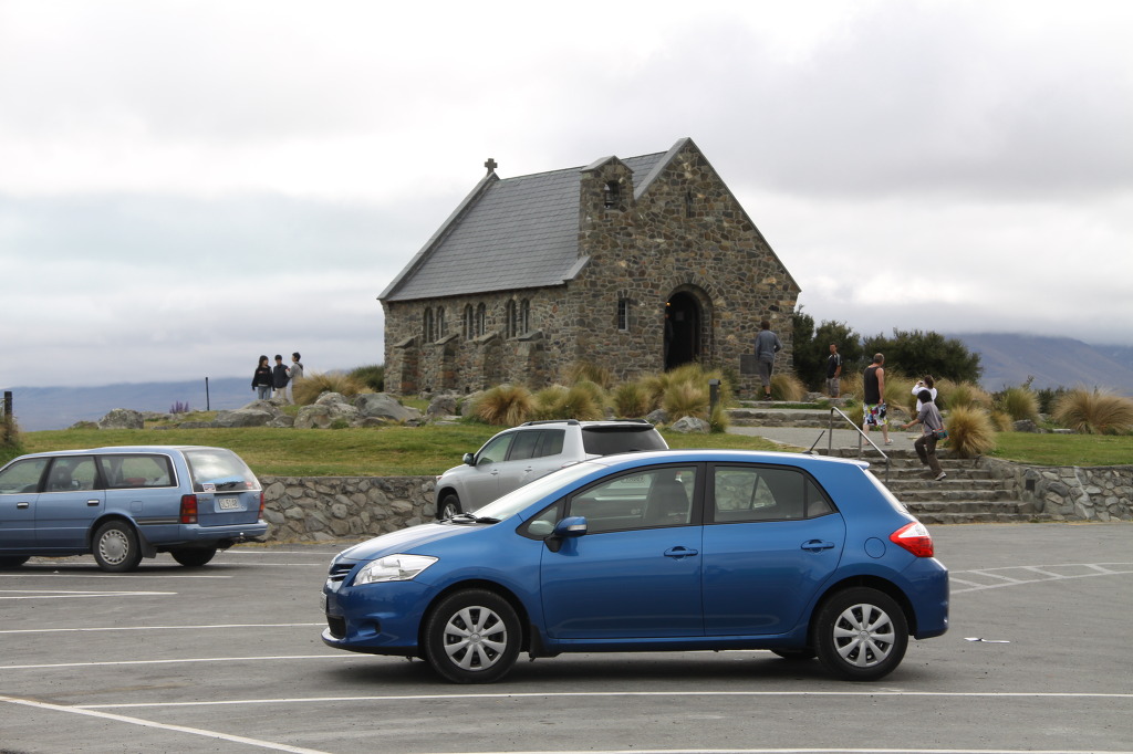 차를 몰고 아래에 보이는 착한 양치기 교회 앞 주차장에 세웠다. 데카포의 풍경으로서 너무나도 유명한 것이 호반에 세워진 교회다. 이 교회는 성서에도 나오는 선한 목자(The Good Shepherd)와 이름이 같다. 개척 시대 양치기들의 삶을 기념하려는 개척민의 손에 의해서 1935년에 세워진 것이다. 교회 내부의 제단위에 있는 창으로 보면 호수와 뒤편에 펼쳐지는 서든 알프스 산맥이 만드는 아름다운 경치를 감상할 수 있다고 하지만 재단 뒤에 있는 창문 앞의 작은 십자가가 더욱 인상적이다. 미국 그랜드 티톤 국립공원에 있는 작은 통나무 교회(Chapel of the transfiguration)의 제단 뒤, 창에 있는 십자가와 같은 느낌이다. 또 창으로 보이는 티톤 산맥과 모습이 너무 흡사하다.