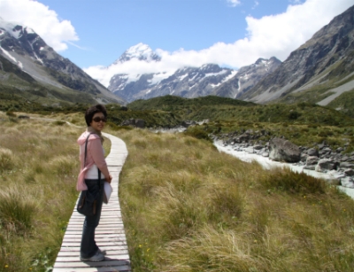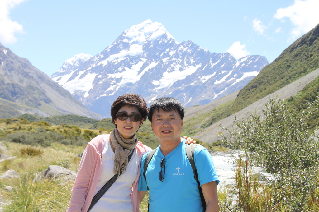 이번 여행에서 아마 최고의 감동이 될 것 같다. 뉴질랜드 여행의 제일 감동이다. 마운트 쿡을 그 자리에 놓고 등지며 헤어져 내려오기가 정말 아쉬웠다. 돌아서 오는 발걸음은 무척 가볍다. 산의 정기를 가득 받은 탓이겠다. 사진을 찍으며 여유 있게 돌아온다. 다리 3개를 건너고 오가는 사람들과 인사도 하고 , 가끔 쿡 산을 뒤돌아보기도 하며 걷는다. 사진을 찍으러 풀밭으로 조금만 들어가도 가시에 찔려 비명을 지른다. 주차장 가까이에 와서 Alpine Monument에 잠시 올라가 마지막으로 쿡 산을 보며 작별을 고했다. 참 멋진 장면이다. 왕복 3시간이 걸렸다.