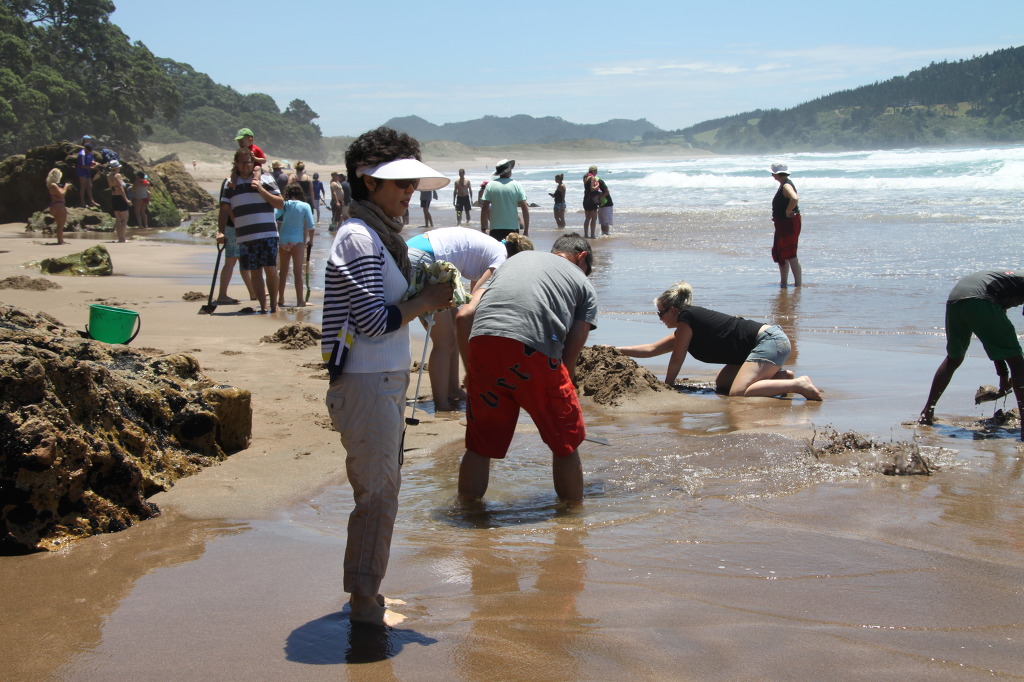 다시 차를 몰고 Hot water beach로 왔다. 사람들이 많아졌다. 주차장에 차를 세워두고 물이 빠지기를 기다렸다. 조금만 기다리면 될 것 같다. 성급한 사람들은 벌써 삽을 들고 백사장을 배회한다. 일단 차에서 점심을 먹었다. 우리 식사는 늘 간단하다. 아침에 한 밥을 꺼내 만들어 놓은 반찬에 그냥 의자에 앉아서 먹으면 된다. 김을 싸서 먹기도 하고 비벼 먹기도 한다. 소고기 반찬에 밥을 비벼서 김을 싸서 먹었다. 물도 숙소에서 끓여온 숭늉이다.