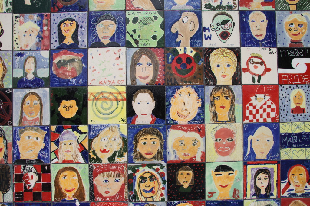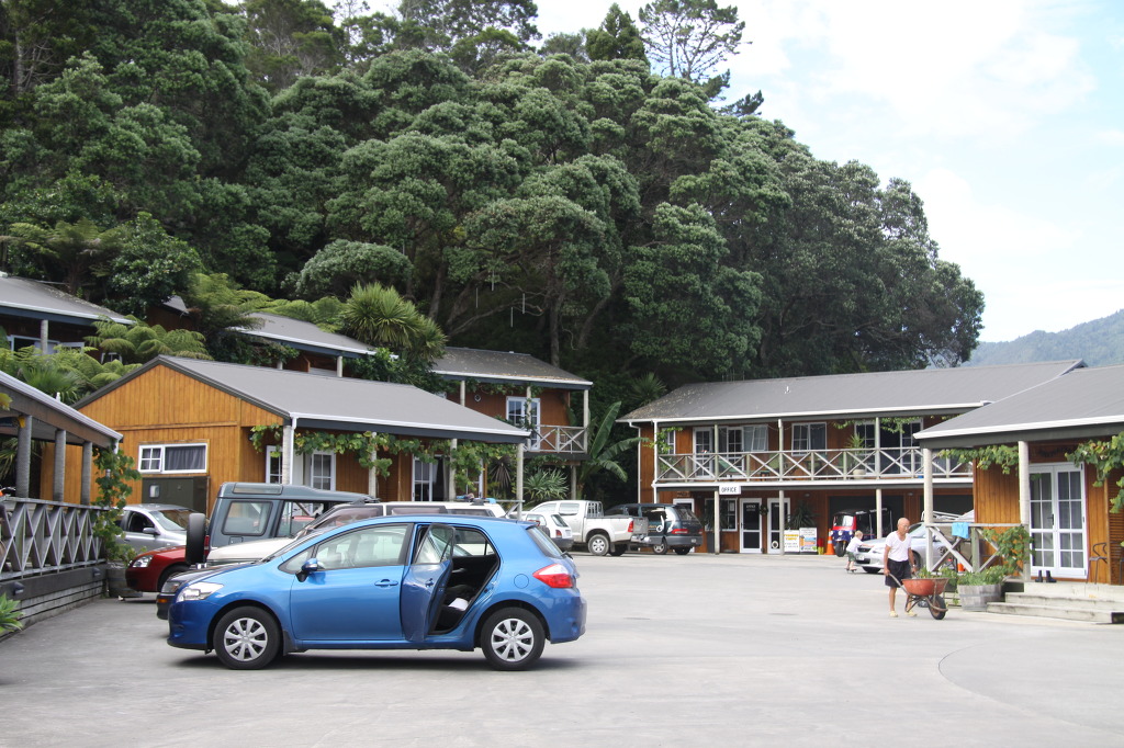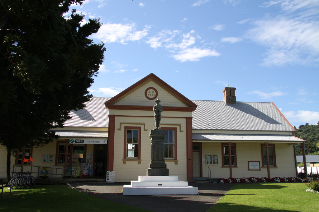잠시 쉰 후에 이제 천천히 차를 몰아 내려간다. 정말 평화롭고 조용한 환경이다. 코로만델 시내에 들어서서 전당한 곳에 차를 세웠다. 아주 작은 마을이다. 우체국 옆이고 학교 같은 건물이 있다. 작은 창고 같은 화장실 벽에는 가로 세로 10cm 정도 되는 정사각형 타일에 꼬마들이 그린 인물화가 벽에 가득 붙어 있어 아주 예쁘고 인상적이다. 길을 건너고 작은 시내를 넘어 ⓘ을 찾았다. ⓘ사무실도 아주 예쁘다. 숙소를 추천받아 예약을 하고 나왔다. 정원에 만들어진 원주민 조각상들 앞에서 사진을 찍었다. 차 있는 곳으로 걸어가다가 학교 같은 건물의 정체를 알 수 있었다. 전에는 학교였는데 이제는 겔러리로 활용되고 있었다. 과거의 모습을 알려주는 흑백 사진도 보인다. 1875~1977년까지는 학교였는데 이제는 학생이 모두 성장해 버려 도시로 갔고 다시 들어올 아이가 없단다.