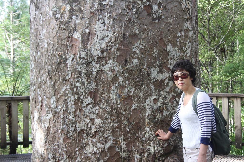 ⑥번의 카우리 나무, 카우리나무 숲을 먼저 보고 돌아 나오며 보기로 했다. 사람을 찾아보기 어려운 숲이다. 주차장에 차를 세우고 이정표를 따라 숲길을 걸어가니 커다란 카우리 나무들이 보인다. 덩치 크고 하늘로 곧게 뻗은 우직한 나무가 가치 있게 보였다. 뉴질랜드를 여행하면서 자연스럽게 알게 된 나무가 가우리 나무와 고사리 나무다. 잘 보존 되어 있는 가우리 숲이 풍성한 느낌을 준다.