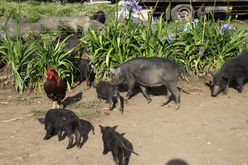 다음 멈춘 곳이 ②번 Stuarts and The Wild Pigs 다. 차가 서자마자 수 십 마리 돼지들이 몰려온다. 순하게 생긴 50대 남자가 부드러운 미소를 갖고 다가오는데 돼지를 안고 있다. 맨발이다. 1000여 평 되는 곳에 컨테이너로 집을 대신하고 100여 마리 돼지와 공작, 닭 등의 동물, 특히 돼지를 방목하며 살고 있다. 좀 특이하다. 말도 잘 통하지 않아 조심스럽게 돼지를 피하여 차를 빼고 나왔다. 잡다한 동물들과 함께 사람이 사는 것이 이상하다. 사람들 외에 돼지를 잡아먹는 맹수 들이 주변에 없나보다. 성경에 돼지를 방목해서 키운다는 얘기가 떠오른다. 돼지와 함께 사는 사람은 꼭 돼지 차림이다. 무엇과 함께 사는가도 외형상 중요한 것 같다. 마음이야 순수하고 아름다운 천사라고 하겠지만..........