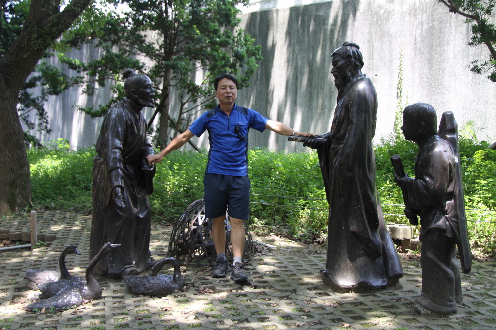 * 8월 4일 목요일. 맑음. 7시 20분에 아침식사를 했다. 식당에 가보니 한국 사람들이 많다. 반가웠다. 어제 많이 들어왔나 보다. 생선가스가 맛있다. 아침부터 좀 과식했나보다. 거리로 나오니 느낌이 신선하다. 거리에는 사람들과 차량들로 분주하다. 특히 출근하는 사람들이 타고 가는 오토바이 행렬이 활기차다. 주로 젊은이들이 타고 간다. 아가씨들도 오토바이를 타고 간다. 모두 핼맷을 쓰고 질서 있지만 속도감 있게 달려간다. 우리는 대북 지하상가로 걸어간다. 타이베이 중앙역으로 가는 것이다. 중앙역 부근에 있는 유적지를 찾아간다. 쑨원의 옛 모습이 간직되어 있는 곳인 국부사적기념관(國父史蹟紀念館)이다. 타이베이 중앙역 근처 시안공원 안에 위치한 국부사적기념관은 중화민국의 국부라 불리는 손문(쑨원)이 일제 강점기 시절 타이완을 두 번 방문했을 당시 머물렀던 일본 전통 목조 건축물 여관이었던 매옥루(梅屋樓 메이우푸)를 식민통치가 끝나고 나서 기념관으로 변경한 곳이다. 내부에는 국부인 손문이 그 시절 머물며 사용했던 유물들과 당시 모습을 그림과 사진으로 전시하고 있다. 외부에는 전형적인 일본식 정원으로 구성되어 있고 중앙에는 장제스가 쓴 기념비가 있다. 시안 공원에는 소나무 대나무 매화 연못 복도 다리 잔디 체리와 진달래 꽃 등 중국 느낌이 가득해서 도심 속에서 바쁘게 생활하는 지역 주민들에게 조용한 쉼터를 제공하고 있다. 국부기념관과 이름이 헷갈린다. 일선(逸仙)공원이라는 팻말이 대문에 씌어있다. 아침 일찍 이라서 인지 사람들이 없다. 다시 지하철을 타고 사림역(士林 시린역)으로 간다. 역은 붉은색으로 전체 분위기가 느껴지는 깔끔한 역이다. 여기서 버스를 타고 국립고궁박물관으로 간다. 1번 출구로 나오니 박물관에 가는 버스들이 많다. 사람들도 많다. 버스를 타고 가서 박물관 앞에 내렸다. 박물관 건물이 멋지다. 들어가는 입구에서부터 웅장함이 느껴진다. 입구에는 천하위공이라는 손문의 글씨가 보인다. 세계 4대 박물관중의 하나라고 말하는 박물관이다. 국립고궁박물관은 현재 보유하고 있는 소장품만 약 68만 점에 달하는 엄청난 규모를 자랑하는 곳으로 전시실의 한계로 한번에 15000점 밖에는 보여주지 못한다. 3개월에 한 번씩 교체함으로 모두 다 보려면 12년이나 걸린다고 한다. 소장품 중에는 민간 물품부터 중국 고대 황실 유물의 진귀한 물품까지 종류가 매우 다양하다. 이를 통해 중국 5000년의 역사를 알아볼 수 있다. 박물관은 1층부터 3층까지 있다. 아내는 전에 와 봤다고 입구에 있는 찻집에서 기다리기로 했다. 입장 전에 꼭 보고 싶은 전시품 리스트를 만들어서 들어갔다. 워낙 넓고 지식이 없어 메모해 둔 유적을 중심으로 살펴보기로 했다. 아쉽게도 유명하다는 옥으로 조각한 배추(취옥백채)와 동파육 돌덩어리(육형석), 올리브 씨앗으로 조각했다는 배(감람핵주)는 볼 수 없단다. 상아투화운룡문투구(상아공)은 106호 실에서 찾았다. 겉에서부터 깎아서 속까지 모두 깎는 고난이도의 기술이 돋보이는 작품이다. 일명 다층구라고 공속에 공이 들어가 있어서 모두 16개의 공이 층층이 있어 따로 움직인다고 한다. 3대에 걸쳐서 만들었다고 한다. 3층에서는 신화속의 동물인 벽사를 찾았다. 기원전 한나라 때 만들어졌다고 한다. 그 외에도 보성홍주전자, 기원전 약 1000여년 경 주나라 때 만들어졌다는 청동으로 만들어진 싼시 반 등을 찾았다. 엄청 사람들이 많다. 알아야 보이는데 모르니 그저 유물일 뿐이다. 다리가 아파서 다 볼 수 없다. 그래도 대만에 가면 꼭 가보고 싶은 곳이었다. 아내와 휴게실에서 잠시 쉰 후에 밖으로 나오니 뜨겁다. 박물관 입구에 위치해 있는 지선원(至善園 즈샨위엔)이 들렀다. 타이완 국립고궁박물관 정문의 오른편에 위치한 지선원은 1984년에 지어진 중국식 전통 정원이다. 지선원은 약 7천 평의 규모며 전체적인 느낌은 마치 박물관의 정원 안뜰 같다. 박물관 입장권이 있으면 이곳도 무료로 구경할 수 있다. 지선원 정문을 통해 들어가면 지선원의 7대 정경이라 불리는 희지서환옹아조상(羲之書換籠鵝造像)과 송풍각(세필지 洗筆池)을 만나볼 수 있다. 총 3개의 크고 깨끗한 연못이 있으며 그 안에는 유유히 헤엄치는 잉어와 흐르는 물소리, 그리고 정원 곳곳에서 새들을 볼 수 있는데 이렇게 자연과 조화를 이룬 정원인 만큼 우아한 조경예술을 느껴볼 수 있다. 항상 관광객들로 붐비는 고궁박물관에 비교하면 한적한 곳이어서 고궁박물관을 둘러보고 지친 몸을 휴식하기에 안성맞춤인 곳이다. 다시 스린역으로 버스를 타고 나왔다. 배가 고프다. 아내가 전에 와서 잘 먹었다는 훠궈집을 간다. 역 앞에 있는 작은 식당인데 개인 냄비에 나오는 훠궈가 좋단다. 식당 이름은 구룡이라는 식당이다. 아내는 야채에 새우가 들어있는 해물종류를 주문했고 나는 야채에 생선살이 들어있는 해물을 주문했다. 밥과 함께 날계란이 나온다. 날계란을 먹지 않으면 돈으로 돌려준다는 아내의 경험담을 이야기해 준다. 깔끔하고 뜨겁지만 시원한 국물이 아주 좋았다. 가격대비 맛도 좋고 양도 푸짐하고 청결하다. 우리가 먹던 식당