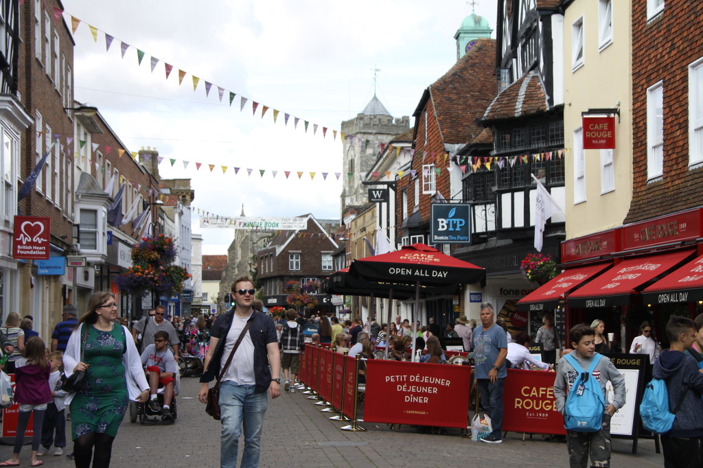 마켙 광장 주변은 보행자 도로가 있다. 오래된 집들과 가게들이 즐비하다. 관광객들이 많이 걸어 다닌다. 우리는 대성당을 향해 걸어간다. 서당 부근에는 그곳에 살고 싶은 마음이 드는 오래되고 멋있는 집들이 많다. 그 중의 하나인 왕의 집에는 박물관도 있다. 드디어 솔즈베리 성당이 보인다. 대성당은 주변은 교회의 토지로 정원 같다. 잔디와 나무 사이로 솟아있는 첨탑이 정말로 아름답다. 주변 정원에는 동상들이 많이 만들어져 있다. 마그나 카르타 88주년 기념상이 잔디밭에 만들어져 있다.