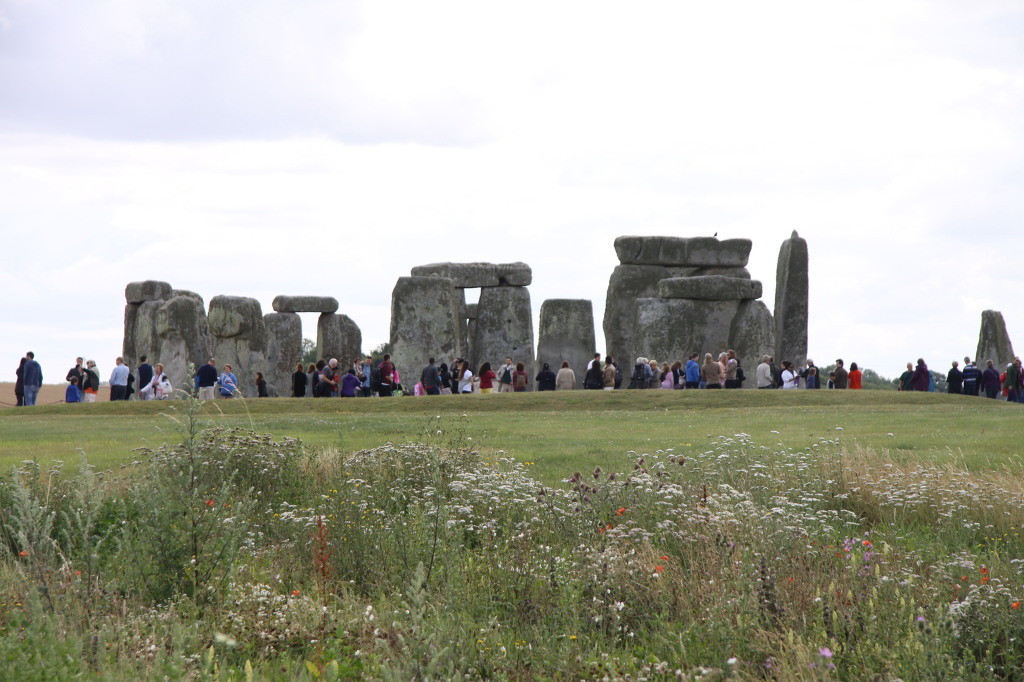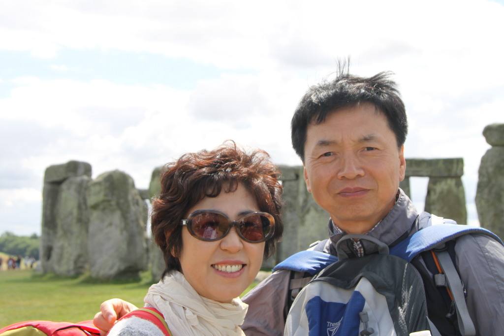 5분정도 달려간다. 드디어 스톤헨지가 보인다. 내렸다. 사람들이 빙 둘러서서 구경하고 있다. 벌판이 넓어서 사람들도 개미같이 보이고 스톤헨지의 바위들도 작아 보인다. 어디서 왔는지 사람들이 참 많다. 반 시계 방향으로 돌아가며 구경을 했다. 사진을 찍어달라는 부부 덕분에 우리도 함께 사진을 찍을 수 있었다. 어디서 돌이 왔을까? 주변을 둘러봐도 바위가 있을만한 곳이 없다. 무슨 용도로 만들어 놓았을까? 누가 만들었을까? 푸른 잔디 위에 세워진 바위 덩어리들은 세워져 있지만 편안해 보였다. 사진에서 보던 것보다 소박해 보이고 더 낡고 나이 들어 보인다. 무거운 배낭의 무게도 잠시 잊어버릴 정도로 감격스러웠다. 서있는 자태가 감격스럽기 보다는 오랫동안 그리워했던 이산가족을 만난 것 같은 감격이다.