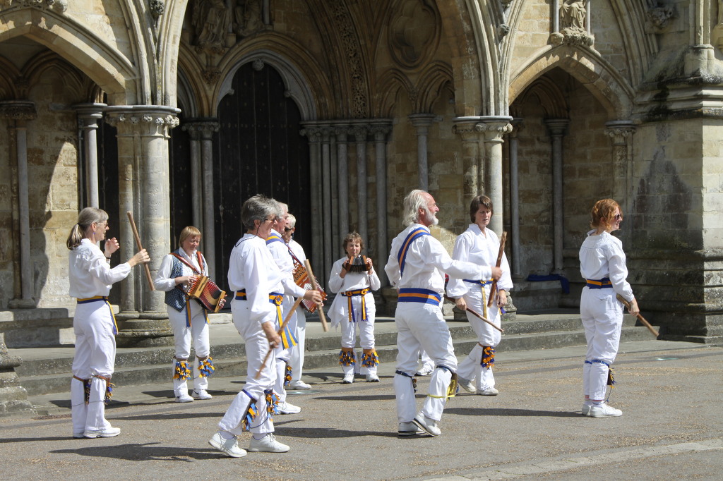 대성당 앞에서는 흰색 복장을 한 주민들이 민속 무용을 하고 있다. 현악기와 아코디언을 든 악사 4명의 반주에 맞추어 60cm 정도의 막대기를 든 10여명의 중년들이 춤을 춘다. 군대 스타일의 약간 딱딱해 보이는 무용이다. 흰색의 깨끗한 복장과 무릎에 찬 장식이 인상적이다. 다시 보행자 거리를 걸어 역으로 향했다. 남미에서 온 팬플릇 연주자의 소리가 골목을 가득 채운다. 에이번 강은 강이라기보다는 시냇물 같다. 맑은 물이 흘러 정이 간다. 거기에 주변 꽃들과 잔디 그리고 고목들과 고풍스러운 집들로 아름다움을 더해준다. 예쁜 시계탑이 오후 3시 40분을 가리킨다. 기차역에 도착했다.