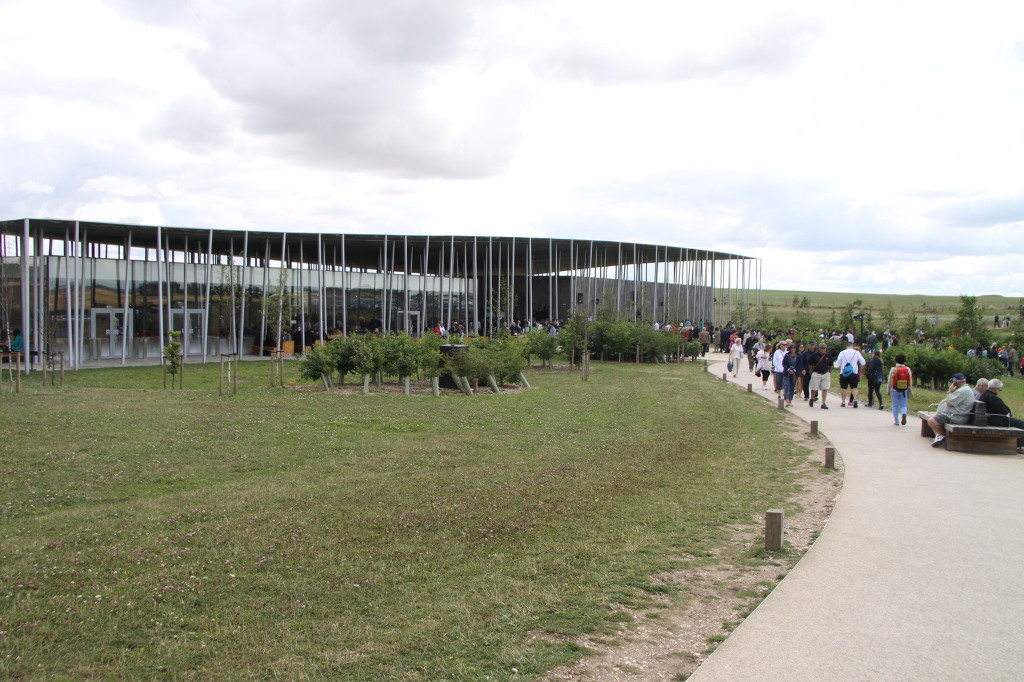 키가 작은 누런 보리밭과 벌판에 아무것도 없더니 갑자기 많은 차량 특히 승용차와 캠핑카가 줄 맞추어 세워져 있다. 무슨 일인가 자세히 살펴보니 이곳이 스톤헨지의 주차장이었다. 맘이 설렌다. 이번 여행에 꼭 들러보고 싶었던 곳이다. 차는 약간 외곽에 우리를 내려주었다. 나중에 이곳에 와서 투어버스를 타라는 안내와 함께......... 스톤헨지 입구로 걸어갔다. 입장표를 사려는 사람들로 줄이 길게 이어져 있다. 매표소 건물에는 작은 박물관과 기념품가게 그리고 셔틀버스정류장과 야외 박물관이 있다. 우리는 단체인데 아무 표시도 없는데 그냥 들어가도 잡는 사람이 없다. 여기에서 스톤헨지까지는 무료 셔틀 버스를 타고 가야한다. 물론 걸어가는 사람도 있다. 눈치껏 아내와 셔틀버스를 타려고 줄을 섰다. 차는 금방금방 들어와 줄을 서자 곧 탈 수 있었다.