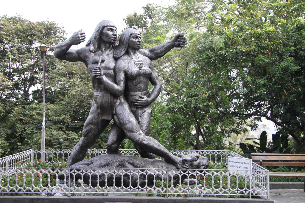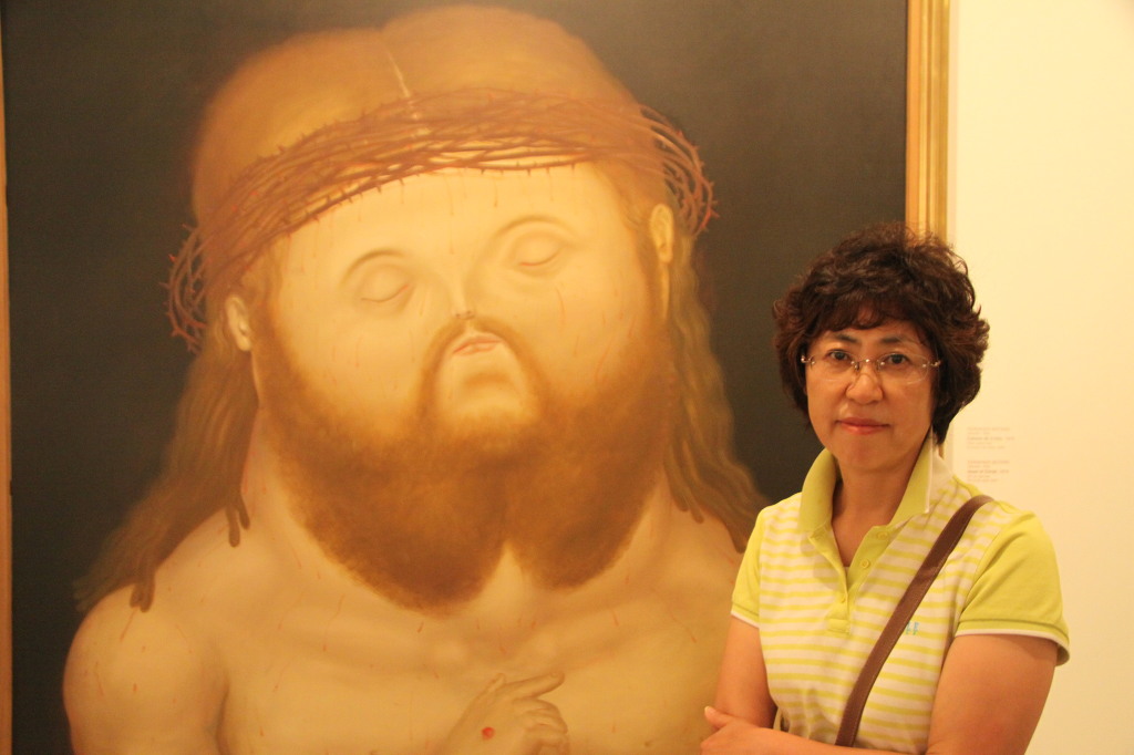 # 1월 25일 월요일 맑음 아침 식사는 누룽지와 어제 사온 망고와 파파야로 했다. 이제 누룽지도 지겹다. 가지고 온 누룽지가 거의 끝나가는 것 같다. 속은 편하고 경비도 절약되어 좋지만 지겹다. 색다른 것이 먹고 싶다. 그리고 좀 부실해 보인다. 오늘은 메데인 시내를 구경하기로 했다. 저녁에 보고타로 이동하기 때문에 배낭을 숙소에 맡기고 체크아웃을 했다. 메트로를 향해 걸어서 내려오다가 늘 만나는 만두 가게 앞에 멈춰서 또 하나씩 맛있게 먹었다. 택시를 타기로 했다. 누티바라 공원으로 가기로 했다. 누티바라는 메데인 시내에 우뚝 솟아 있는 시내가 내려다보이는 언덕, 작은 산입니다. 분지형태로 자리 잡고 있는 주황색 건물들이 가득한 메데인의 모습을 한 눈에 볼 수 있는 곳이다. 택시는 우리를 아침의 누티바라 언덕 정상에 내려주었다. 검은색 동상이 먼저 우리를 맞아준다. 근육질 남성과 도끼를 든 여인의 모습인데 사자를 밟고 있는 형태다. 누구의 동상인지 알 수 없지만 무척 역동적인 원주민의 모습이다. 언덕의 정상은 크지는 않았지만 아기자기하게 꾸며져 있는 것이 귀엽다는 생각이 든다. 작은 박물관도 있다. Museo de ciudad 라는 박물관인데 옛날에 사용하던 생활용품 등을 전시해 둔 일종의 인류학 박물관이다. 언덕 중앙에는 작은 소박하고 아담한 성당도 있고 음식점들도 귀엽고 집들도 오래되 보이는데 귀엽게 채색되어 있고 테라스가 길게 이어져 있다. 특히 흰 벽에 빨간색 칠을 한 아담한 집이다. 작은 분수대도 있다. 중년 남성의 동상도 있다. 그냥 읽으면 길레르모 줄르라가(1924~1997)이라고 적혀 있는데 구체적으로 무슨 일 한 사람인지는 알 수 없다. 조깅을 하거나 자전거를 타면서 운동하는 이들이 보이기 시작한다. 여기서 내려다 보는 메데인 시내가 압권이다. 메데인은 꽃과 미녀의 도시로 알려져 있다. 메데인(스페인어: Medellín)은 콜롬비아 제2의 도시이며 콜롬비아 서부, 안티오키아 주의 주도이다. 해발고도 1500m의 안데스 산맥 고원지대에 위치한다. 스페인의 식민지 시절 금의 개발 기지로 건설되었고, 후에 커피 재배의 중심지로 성장하여, 콜롬비아 커피 재배 지역의 중심지로 많은 커피를 집산하고 있다. 콜롬비아 최대의 공업도시로서, 제철, 자동차, 플라스틱, 섬유, 식품(맥주) 등의 공업이 활발하다. 수도 보고타 다음가는 콜롬비아 제2의 도시로, 아름다운 공원과 근대적인 고층 건물이 조화를 이룬다. 센트랄 산맥의 온화한 기후대의 험준한 아부라 계곡에 자리 잡고 있다. 카우카 강의 지류인 포르세 강이 도시를 끼고 흐른다. 콜롬비아에서 가장 큰 도시로 손꼽히며 철강업을 비롯한 공업이 매우 발달했다.