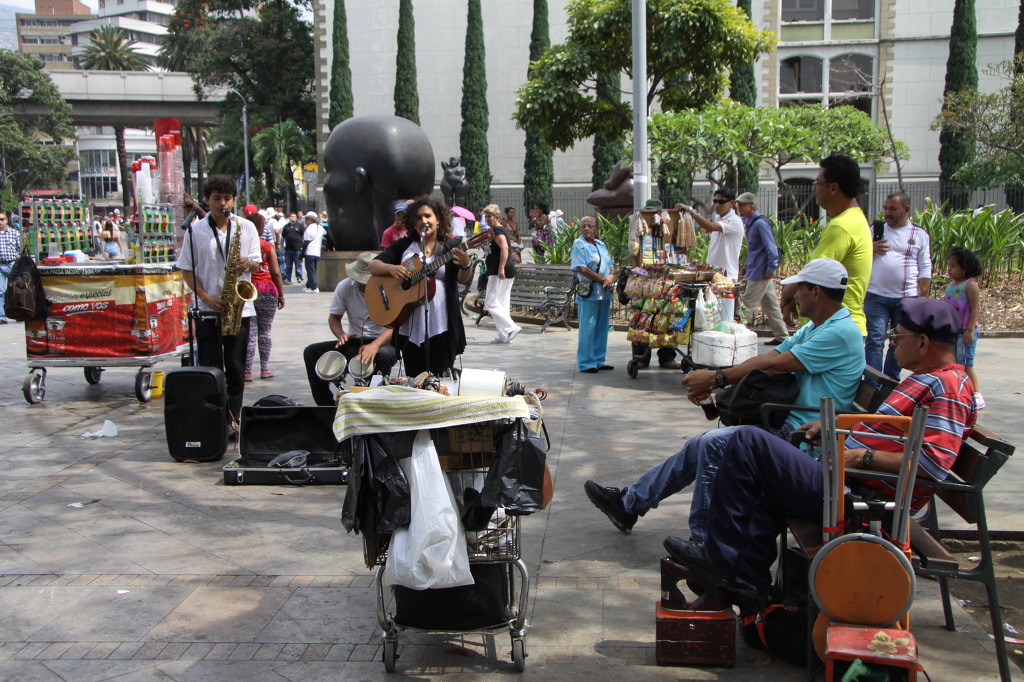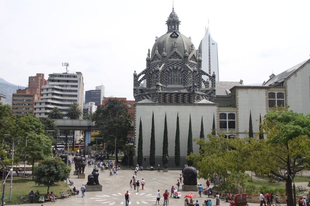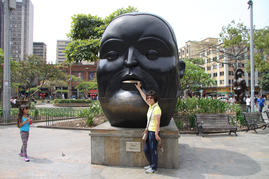 1675년에 광산 도시로 세워졌지만 식민지시대의 건축물은 거의 남아 있지 않다. 현대적 도시계획에 따라 잘 정돈된 도시로 세워졌다. 식품가공·목공·야금·자동차·화학제품·고무제품 등을 포함해서 기초산업이 폭넓게 발달했다. 직물공장과 의류공장 때문에 '콜롬비아의 맨체스터'로 알려져 있다. 1914년 이후 파나마 운하가 완공되고 칼리 시에서 철도가 들어오면서 주요 운송교차로로서 급속히 성장했다. 도로로 카리브 해 연안과 연결되고 국제공항이 있다. 메데인은 오랫동안 콜롬비아에서 가장 큰 커피 산업의 상업 중심지 가운데 하나였다. 1980년대 중반에는 리오네그로 가까이에 새 국제공항이 완성되었다. 20세기 후반에는 콜롬비아산(産) 코카인을 국제적으로 불법 판매하는 중심지가 되었다. 화가 보테로의 고향이고 마약 왕 파블로의 활동 중심지였던 곳으로 알려져 있다. 우리는 도시로 들어가 보기로 했다. 언덕을 내려가는 길은 나선형으로 돌아 내려간다. 조용하고 깨끗하다. 공원의 입구가 나온다. 지도에서 우리가 서 있는 곳을 파악하고 도시 중심으로 가기위해 방향을 잡고 걸었다. 북쪽으로 가면 될 것 같았다. 가다보니 보행자 도로가 없다. 넓은 도로가 길을 막고 있다. 자동차들이 무섭게 달린다. 대형 건물들이 눈앞에 보이는데 가까이갈 방법이 없다. 조심스럽게 대로를 횡단하고 나니 작은 길이 보인다. 잘 자란 가로수 나무가 빌딩 사이에 자라고 있다. 걸어가는 사람을 따라 뒤 따라간다. 겨우 인도를 찾았다. 어디로 방향을 잡을 까 생각하다가 육교 건너편에 보이는 오래되 보이는 교회로 목적지를 삼았다. 겨우 찾아간 교회는 문이 굳게 닫혀있었다. 주변에는 차량을 수리하는 자동차 정비소가 가득한 곳이었다. 기름 냄새가 가득했고 거친 작업복을 입고 일하는 사람들이 많이 보였다. 길모퉁이에 있는 포차에서 오렌지를 갈아주는 주스 아줌마를 만났다. 오렌지를 갈아주는데 무척 시원하고 신선했다. 중심가를 향해 다시 길을 나섰다. 처음 도착한 곳이 시립도서관(Biblioteca) 건물이다. 현대식 건물인데 특이하게 생겼다. 기둥들이 잔뜩 세워진 광장이 인상적이고 그 옆에는 대나무가 심겨진 정원이 있다. 루세스 공원이란다.(Parque de las Luces). 공원 건너편에는 법원 건물이 있는데 오래되 보이지만 무게가 느껴지는 건물이다. 법원 건물의 시계가 눈에 들어온다. 대나무가 심겨진 공원을 따라 걸어가니 커다란 관장이 나오고 그 광장 맞은편에 교육청 건물이 있다. 1894년에 세워진 건물인데 2003년에 재건축을 한 예쁜 건물이다. 아내는 화장실이 급하다고 교육청 건물에 들어가 해결하고 나왔다. 우리가 서있는 거리가 칼레 44번 길이다. 보행자 전용 골목길이 나온다. 우리는 북쪽으로 발길을 돌렸다. 보행자 도로에는 상가와 식당, 그리고 작은 가판대가 가득하고 걸어 다니는 사람도 엄청 많다. 보행자들과 장사꾼들이 섞여서 복잡하다. 좀 이른 시간이지만 점심을 먹기로 했다. 현대식 페스트푸드점으로 들어갔다. 크고 깨끗하게 실내가 꾸며진 식당이다. 벽에는 다양한 음식 메뉴 그림이 가득하다. 그림을 보고 주문했다. 돼지고기와 야채 밥과 옥수수가 올려 진 메뉴다. 음료수도 주문해서 먹었다. 손님을 기다리는 종업원들의 눈빛이 반짝거린다. 점심을 간단히 해결하고 나왔다. 거리에는 장사꾼들과 거리의 예술가들이 우리를 즐겁게 해준다. 어차피 이들의 목적은 똑같은 것 같다. 돈이다. 과일 파는 수레가 보이는데 엄청난 파파야가 쌓여있다. 풍성한 과일을 보니 도시가 풍요로워 보인다. 왼편에 흰색 교회가 나타났다. Ermita de la Veracruz 교회다. 교회로 들어가 보니 내부도 흰색이다. 시원해 보인다. 드디어 보테로 조각 공원이다. 주변에는 박물관과 Palacio de la Cultura Rafael Uribe Uribe(우리베 문화궁전)라는 멋진 건물이 자립잡고 있다. 조각공원에는 보테로가 기증한 그의 작품 23점의 청동상이 전시되어 있다. 현지인과 관광객들로 엄청 북적인다. 분주한 보테로 조각공원에서는 메데인 출신이자 전 세계적으로 유명한 아티스트 페르난도 보테로의 조각 작품 수십 점이 눈길을 끈다. 조각 작품은 사람이나 동물을 기괴한 비율로 비대하게 표현하고 있는 점이 아주 특이하다. 현지인과 여행객 모두 이 코믹한 조각 작품과 함께 사진을 찍으며 웃고 즐거워하는 모습을 쉽게 보실 수 있다. 페르난도 보테로는 자신의 작품 상당수를 고향인 메데인에 기증했다. 이 널찍한 광장을 걸으며 23점의 코믹한 작품들을 천천히 구경해 보는 것도 재미있다. 정말 웃기는 조각 옆에서는 사진도 찍는다. 이러한 작품은 모두 ‘머리, 말, 정장을 입은 남자, 정장을 입은 여자, 과일을 들고 있는 여인, 고양이, 앉아있는 여인, 누워있는 여인, 잠자는 비너스, 제우스와 에우르페, 로마병정, 개, 생각, 손가락, 스핑크스, 말에 올라 탄 남자, 모성애, 아담과 이브 등의 아주 간단한 제목을 가지고 있다. 비둘기 작품에 특히 주목해 보란다. 1995년 테러리스트에 의해 메데인에서의 폭탄 폭발 사고로 조각품 ‘Bird'가 부셔진다. 이 사고로 23명이 사망하고 많은 이들이 부상을 당하게 된다. 메데인은 약물거래의가 빈번히 일