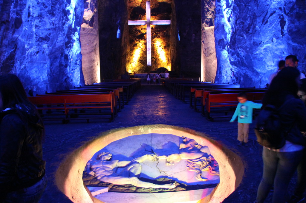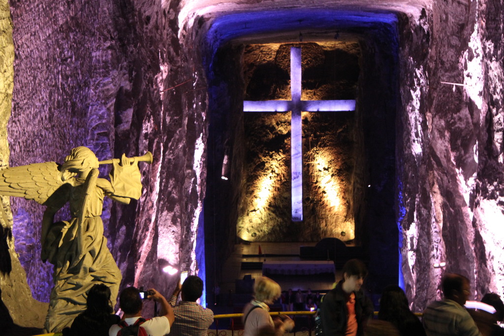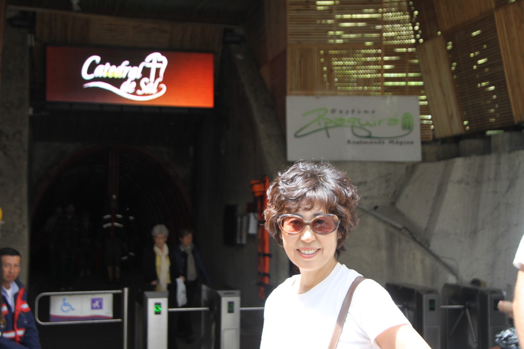 # 1월 27일 수요일 맑음 보고타근교에 있다는 소금성당에 다녀오기로 했다. 아침식사로 망고와 파파야, 그리고 누룽지를 끓여 먹는다. 저녁에는 우리가 원하는 숙소로 바꾸어 준다고 해서 짐을 정리해서 맡겨놓고 나왔다. 시내로 나와 버스를 타려고 하니 출근하는 사람들로 엄청 붐빈다. 우리가 도착한 버스 정류장은 오로역이다(Oro). 보고타에는 관광객들이 편하게 이용할 수 있는 메트로가 없다. 버스 정류장이라기보다는 전기 트램이다. 하지만 그와 비슷한 트렌스밀레니오(TransMilenio)가 있어 좋은 대안이 된다. 서울 시내의 버스 전용차로 같은 것이다. 이 버스 시스템의 도입하기 전에는 보고타 시민들이 30km를 버스로 이동하기 위해 2시간 15분이 소요되었는데, 트렌스밀레니오의 도입으로 그 시간이 50분으로 단축되었다고 한다. 요금은 교통카드를 사거나 일회용 표를 구입해서 타는데 출퇴근 시간을 제외하고는 off peak 요금이 적용되는데 그 시간대가 좀 복잡하다. 트렌스밀레니오를 탑승하기위해서는 먼저 자신이 목적지가 어느 존(zone)에 속하는지 확인해야한다. 노선도에 여러 가지 색깔로 복잡하다. 모든 버스가 모든 정류장에 다 서는 것이 아니다. 보고타 대중교통의 중추라고 할 수 있다. 보고타의 메인 도로 위 전용도로만을 이용하여 달리기 때문에 자가용을 제외하고 다른 곳으로 이동하고자 할 때 가장 최단거리로 이동할 수 있는 교통수단이다. 가장 큰 장점은 전용도로를 지하철 레일처럼 오직 트렌스밀레니오 버스만 이용할 수 있기 때문에 교통체증이 없고 비교적 정확한 시간내에 이동할 수 있다는 점이다. 단점으로는 엄청나게 큰 대로같이 메인로에서만 이용가능하기 때문에 보통 본인의 거주지에서 작은 애벌레버스를 타고 가장 가까운 트렌스밀레니오 역까지 이동하여 타야한다는 것이다. 우리는 걸어갔다. 게다가 로컬버스와 트렌스밀레니오간 환승할인이 없으며 엄청난 수요에 비해 공급은 한정된지라 꽉꽉 차 다니는 편이다. 우리는 우리 목적지 Norte 역을 가려고 수첩에 가는 방법을 적어 왔는데 오로 역에서는 트렌스밀레니오가 없었다. 할 수 없이 목적지를 보여 주며 젊은이에게 물어 보니 여기서 F23번을 타고 Jimenez 역으로 가서 B1 트렌스밀레니오를 타면 갈 수 있다고 친절하게 설명해 주었다. 젊은이가 시키는 대로 표를 끊고 트렌스밀레니오를 기다린다. 표를 끊는 것도 도와주었다. 출근시간이라 복잡하다. 우리를 발견한 교통경찰관이 뒤로 맨 가방을 앞으로 매라고 알려준다. 소매치기가 많단다. 이때부터 보고타 시내를 다닐 때는 가방을 앞으로 맨다. 혹시나 하는 마음에 가방을 꼭 껴안고 사람들 틈에 껴 있는데 역시나 일찍 가려고 밀고 세치기하고 정말, 어디서 많이 본 풍경이다. 빨리 타려는 사람들이 세치기하고 뒤에 있는 사람들이 밀고 내리는 사람들로 막히고 정말 엉망이다. 겨우 차에 올라타고 내려 또 바꿔 타고 간다. 점점 도시를 벗어나면서 차가 헐렁해진다. 아내는 빈자리를 찾아 앉기도 했다. 우리 목적지 노르테 역까지 50분이 걸려서 내렸다. 오전 8시 40분이다. 이 역에서 Zipa 행 버스를 타야한다. Zipa라는 글자만 보여주어도 친절하게 알려준다. 뒤편 버스정류장이 있어서 찾기 쉬웠다. Zipa행 버스(콜렉티보 Colectivo)가 여러 대 보인다. 요금은 45000페소다. 거의 1시간을 달려간다. 구시가지에 내려준다. 종점이다. 소금교회를 찾는다. 광부들의 간절한 기원이 서린 소금 성당 시파키라(Zipaquira). 우리는 이제 버스에서 내려 수첩에 기록한 시파키라라는 단어를 보여주면 거리에서 만나는 사람들이 친절하게 방향을 알려준다. 시파키라는 발음이 좀 그렇다. 러시아의 인사말 스빠시버가 생각나는 단어다. 골목길을 걷다보니 구시가지의 광장이 나타난다. 오래된 교회와 오래된 건물들이 사각광장을 둘러싸고 있다. 원색을 칠한 목조 테라스가 길게 벽에 붙어있다. 붉은 기와들이 세월과 함께 무거워 보인다. 시간을 거꾸로 흘러 옛날로 돌아간 기분이다. 교회와 낡은 건물들을 배경으로 광장에서서 사진을 찍는다. 수도 보고타와는 달리 사람도 그리 많지 않아 한적하면서도, 남미 특유의 화사하면서도 예쁜 건축물들을 많이 볼 수 있어서 좋았다. 오래된 종려나무가 키를 자랑하듯 몇 그루 광장을 지키고 있다. 오래된 교회는 문이 닫혀있다. 관공서 같은 건물이 있는데 외관이 화려하지만 낡아 보인다. 화장 짙게 한 할머니 같은 모습이다. 다시 소금성당을 향해 발걸음을 옮긴다. 걸어가기를 20여분, 언덕이 나오고 계단이 이어진다. 시계를 보니 오전 10시 10분이다. 여기부터 관광열차를 타고 올라가는데 손님이 없어서인지 그대로 서 있다. 우리는 걸어서 올라간다. 사람들이 몇 사람 보이는데 우리가 처음인 것 같다. 10시 30분 입장권을 끊었다. 25000페소다. 10시 30분에 첫 팀이 입장을 한다. 우리는 영어 가이드를 따라간다. 입구에 들어서서 좀 걷다보니 천정에 각 나라 국기들이 조명으로 만들어진다. 우리는 한국국기를 만나기 위해 멈춰 서서 기다렸다. 우리 일행은 가버렸다. 세계 각국의 국기들이 나타났다 사라진다. 알파벳 순으로 나오는 것 같다. 태극기를 확인하고 