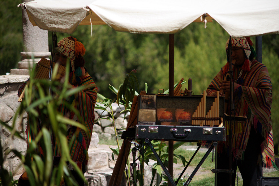 부페식당에서 노래를 불러주는 인디오 악사들.