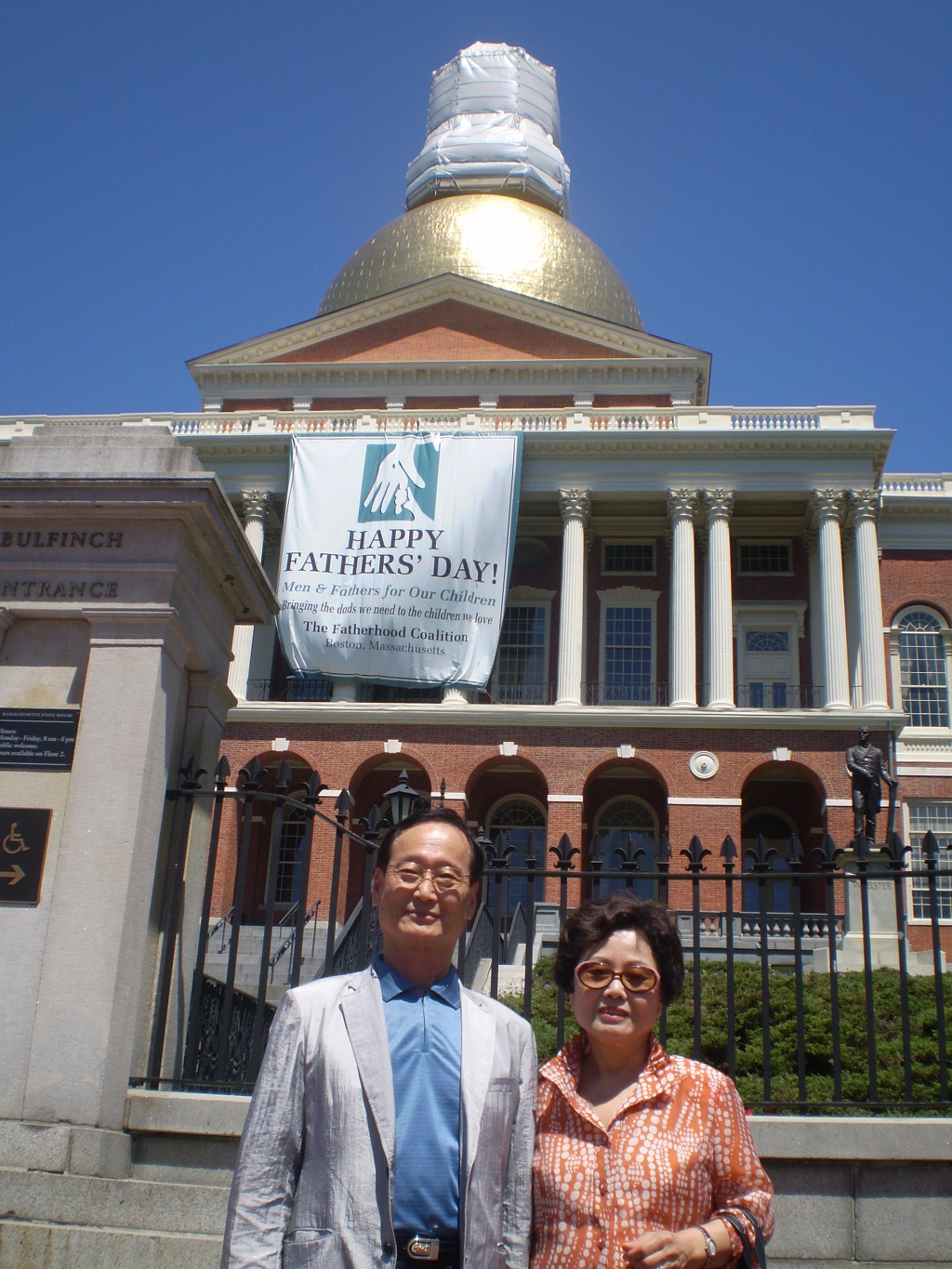 사진043: 마사츄세츠주지사공관 앞에서 [건물 현수막에 아버지 날(보통6월 셋째 일요일)을 홍보하고 있다