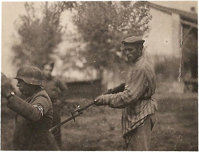 석방된 유태인이 나치 군인에게 총을 겨누고 있다.