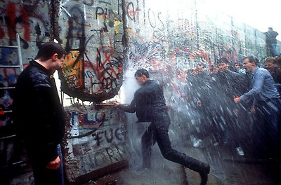 베를린 장벽을 무너뜨리는 모습. 1989년