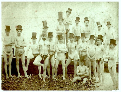 영국의 수영 클럽 단체 사진, 그런데 모자는 왜 썼을까? 1863년.