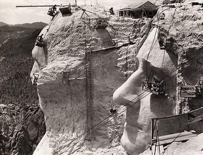 공사중인 Mount Rushmore 의 큰바위 얼굴 (Thomas Jefferson). 1939년.