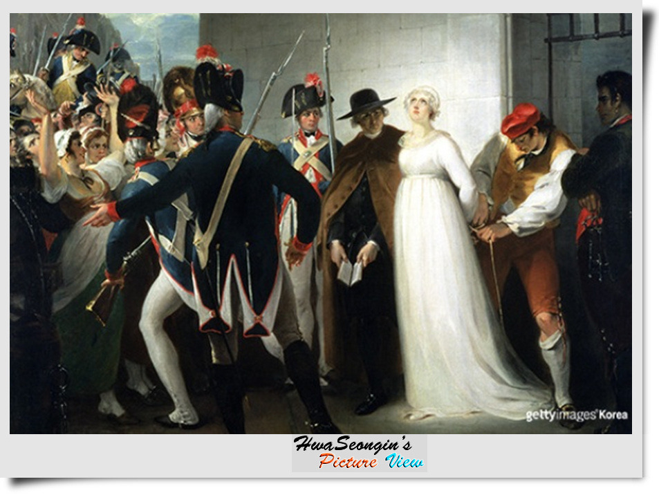 참수처형 콩코드광장 처형장으로 끌려가는 앙뚜와네트 1793년 1월 21일, 혁명 재판은 루이 16세에게 사형 판결을 내려 단두대로 참수형에 처했다. 그해 8월 1일에 마리 앙투아네트는 콩세르쥬리 감옥으로 이감된 뒤, 10월 초에 공개 재판을 받았지만, 결과는 처음부터 이미 정해져 있었다. 민족주의에 깊이 물든 혁명기의 민중에게 마리 앙투아네트는 다른 무엇보다도 오스트리아 여자였고 반역자였다. 1793년 10월 15일, 그녀는 혁명 재판으로부터 사형 판결을 받았으며, 다음날인 10월 16일, 콩코드 광장에서 남편의 뒤를 따라 단두대에 의해 참수당했다. <출처:위키백과>