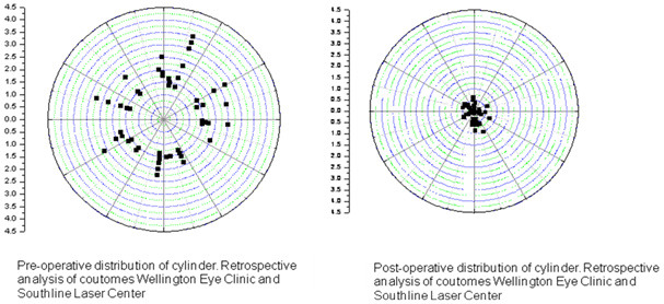 T-cat: Topolyzer의 측정값들 조합하여 각막의 모양대로 수술이 가능하도록 하는 토포 가이드 수술로, 각막상처,