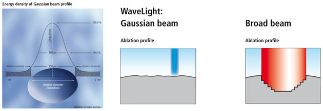가우시안 빔(0.68mm FWHM)을 사용하여 수술 부위가 매끈하여 더욱 선명한 시력을 얻을 수 있고 퇴행을 줄일 수 있습니다.
