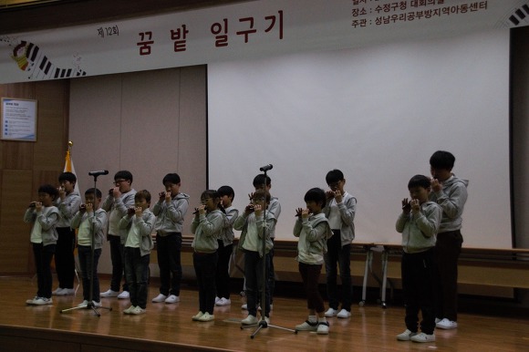 성남우리공부방에서는 매년 한해동안 가꾼 꿈밭을 보여주는 꿈밭일구기를 진행하고 있는데요. 특기적성프로그램인 작은교실과 아동자체동아리인 나래를 통해 한해동안 열심히 갈고 닦은 실력을 부모님들과 친구들 앞에서 뽐내는 꿈밭일구기.