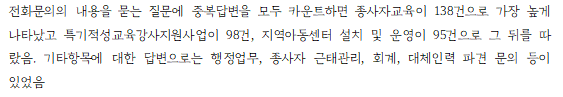 -특기적성 강사 지원이 많으면 좋겠음. 1년 사업으로 하면 좋겠음. 계속 지원 필요함