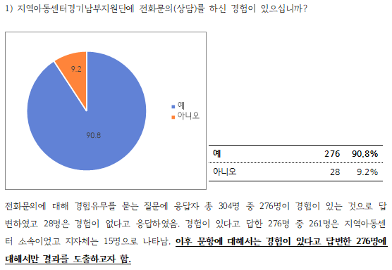 - 응답참여 : 지역아동센터 종사자 및 지자체 담당자 총 304명(센터 288명, 지자체 16명)