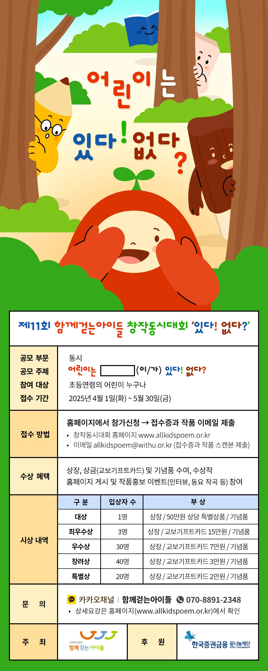 '제11회 함께걷는아이들 창작동시대회 있다! 없다?' 대회를 개최합니다.