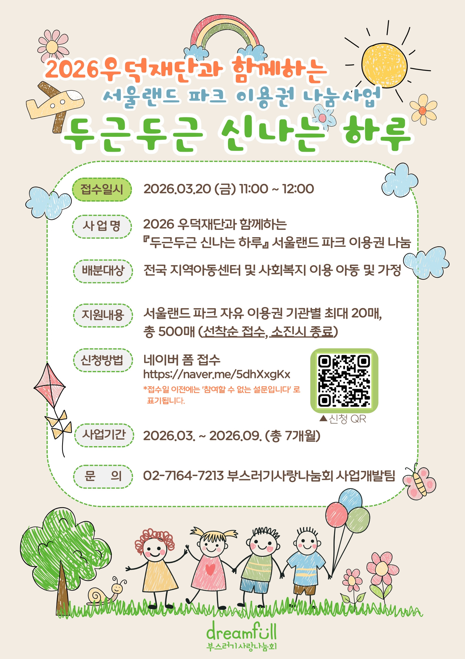 2026 우덕재단과 함께하는 『두근두근 신나는 하루』 서울랜드 파크이용권 나눔