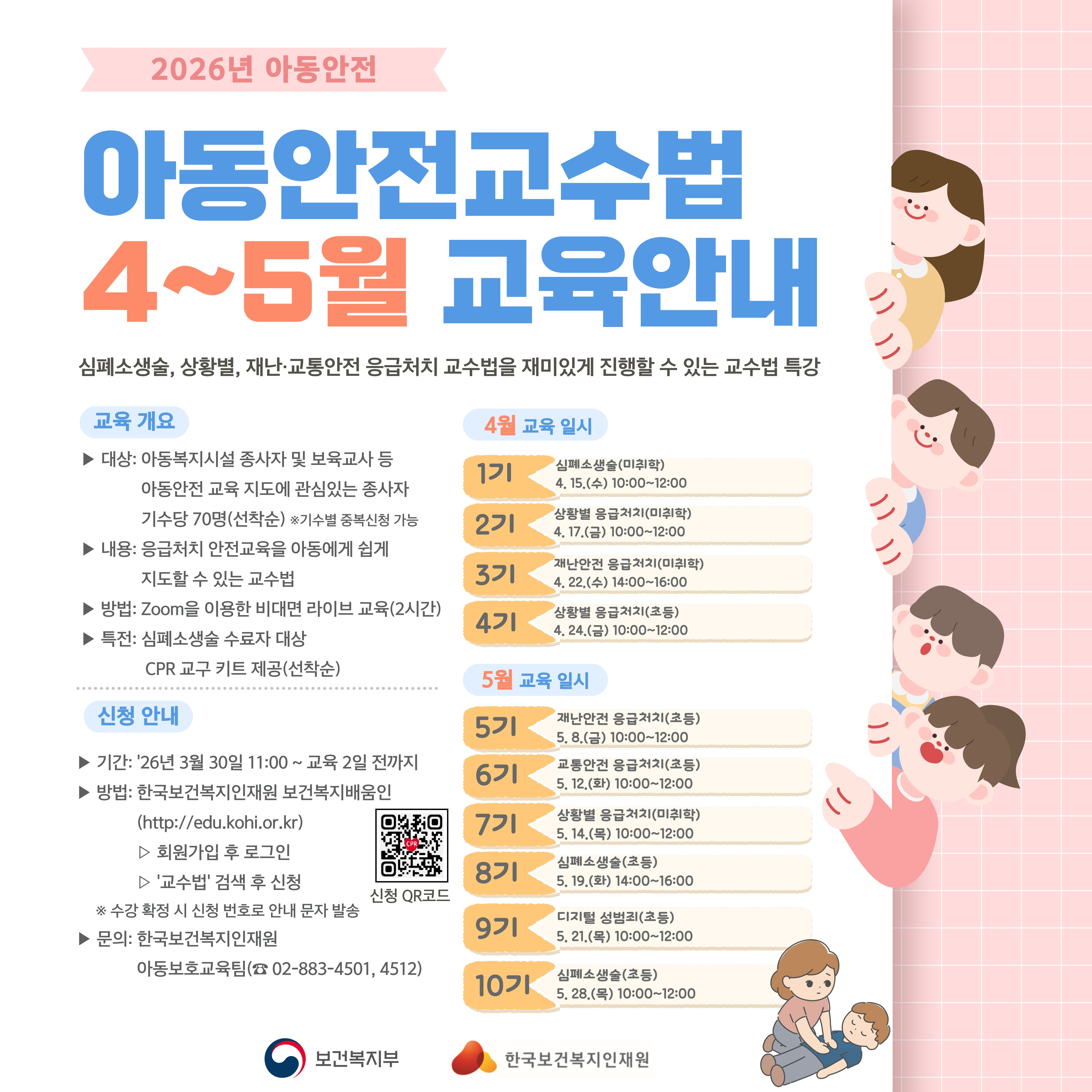 [한국보건복지인재원] 아동안전교수법 교육 안내 작성자경기남부지원단|작성시간26.03.26|조회수81 목록 댓글 0 글자크기 작게가 글자크기 크게가 교육신청 매뉴얼.pdf2.09MB 첨부파일첨부된 파일이 2개 있습니다. jpg 파일 아동안전교수법 포스터_1.jpg 다운로드 pdf 파일 교육신청 매뉴얼.pdf 다운로드 다음검색 현재 게시글 추가 기능 열기 북마크 공유하기 신고 센터로 신고 댓글 댓글 0 댓글쓰기 답글쓰기 댓글 리스트
