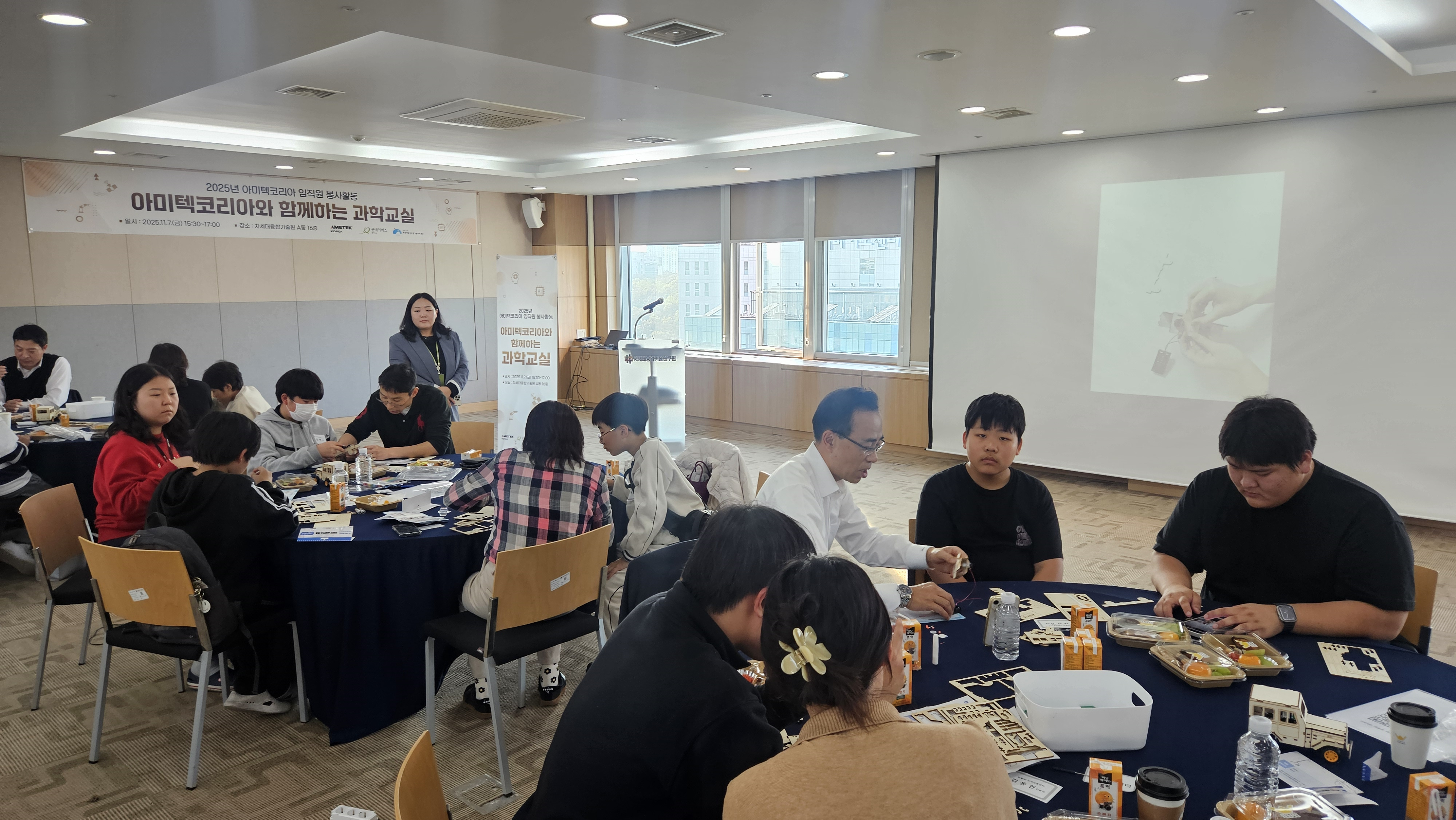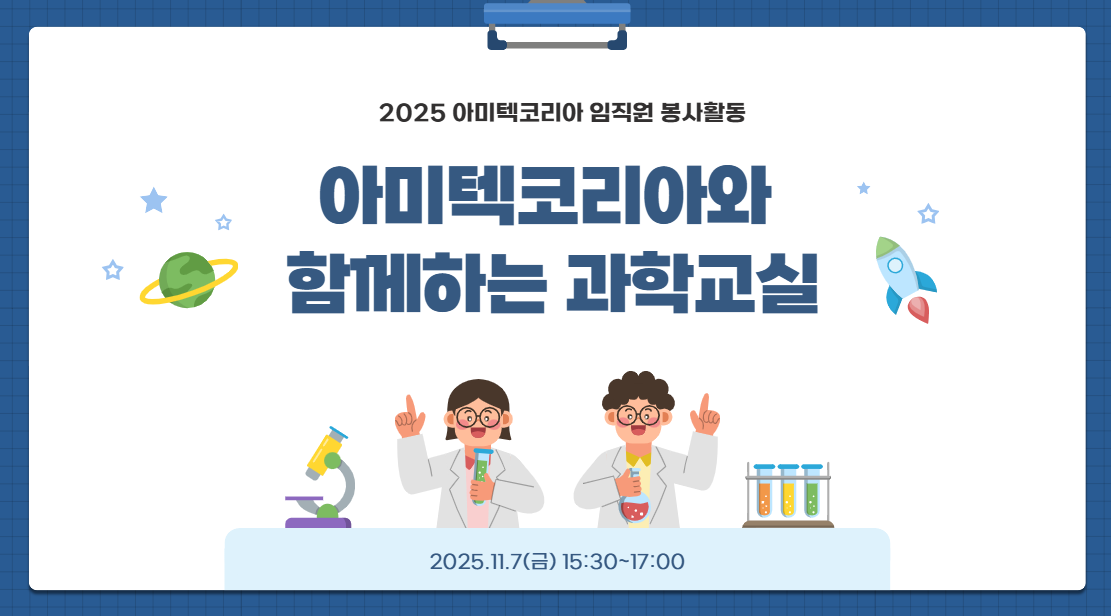 지난달 11월 7일 아미텍코리아 임직원들과 함께하는 과학교실을 진행했습니다.