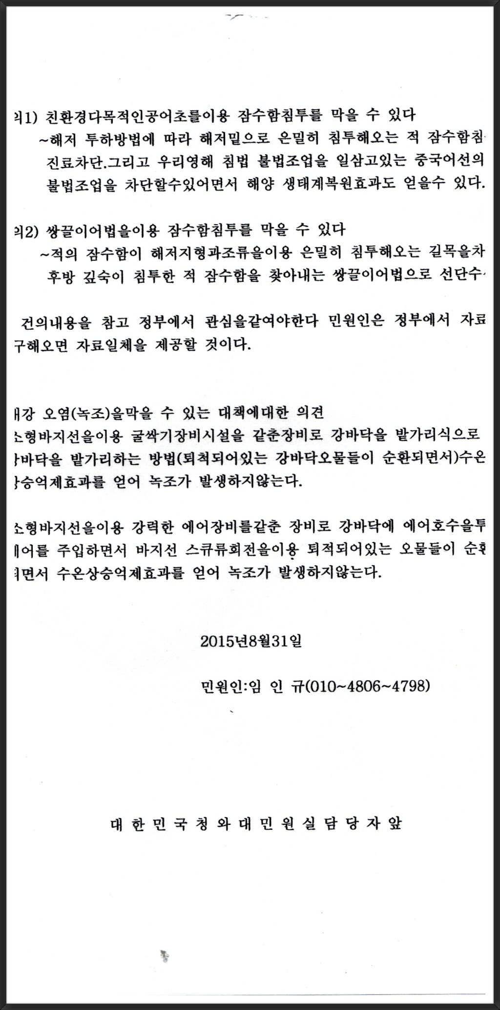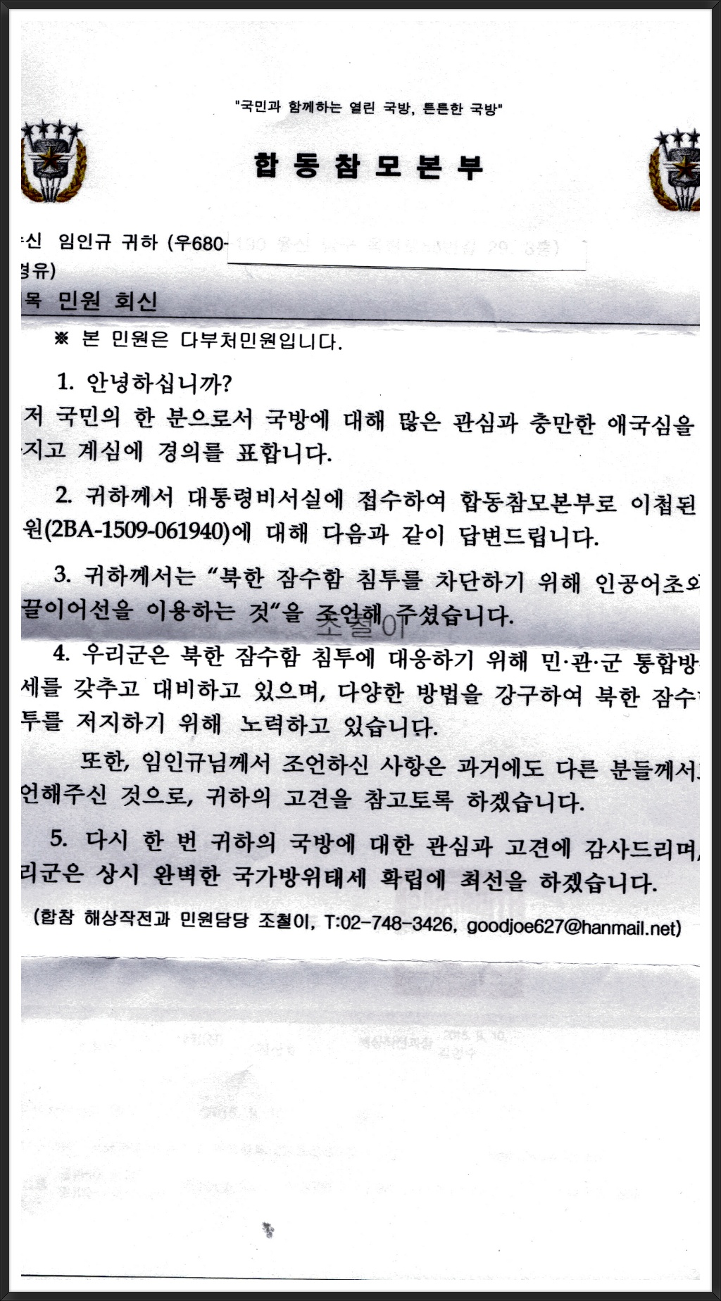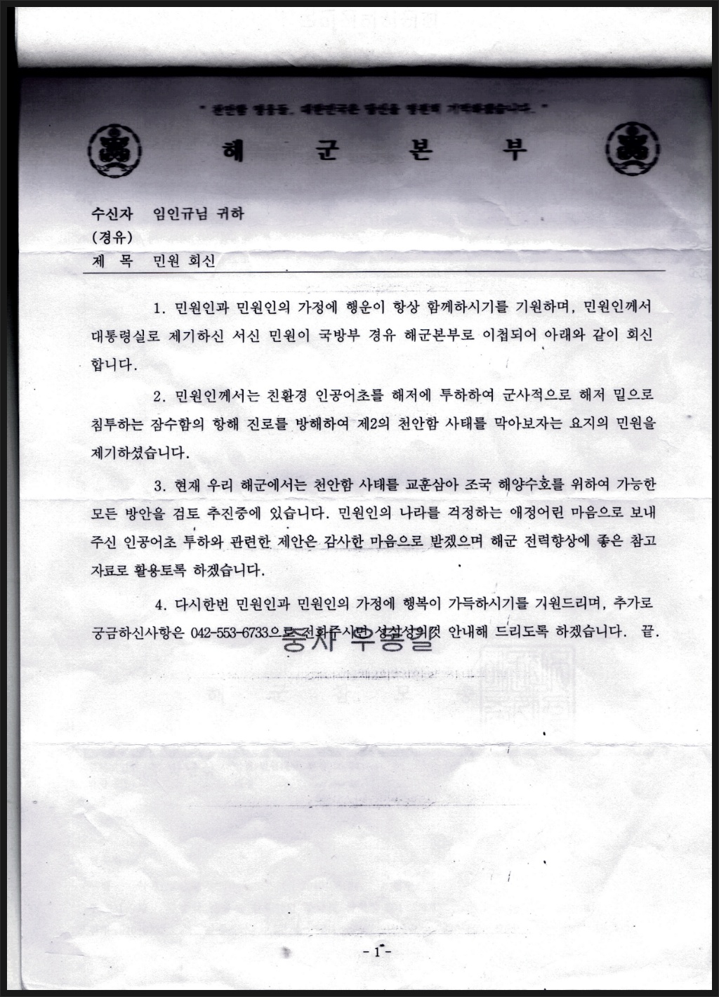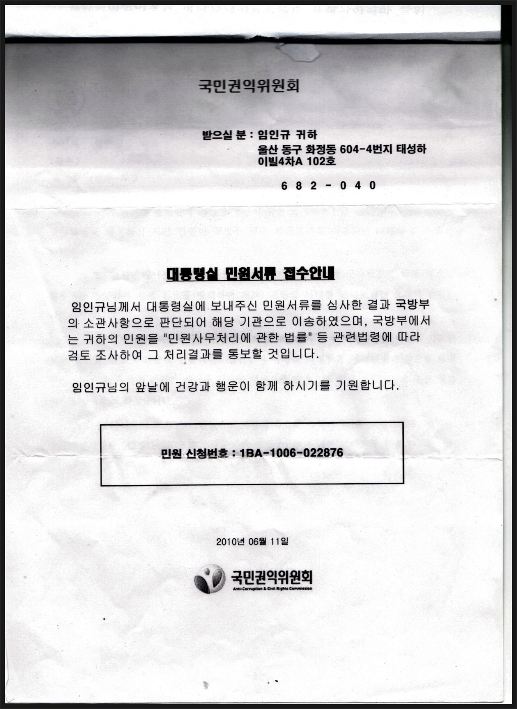손톱.발톱 부모님게 유언장자필작성 봉투에 밀봉한후 작전지역인 백령도.연평도로 보내졌음.