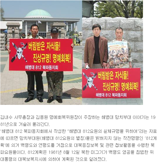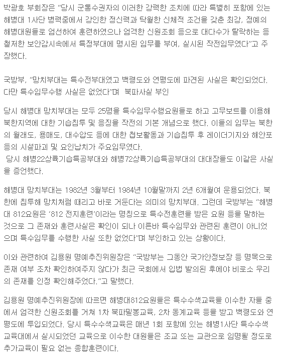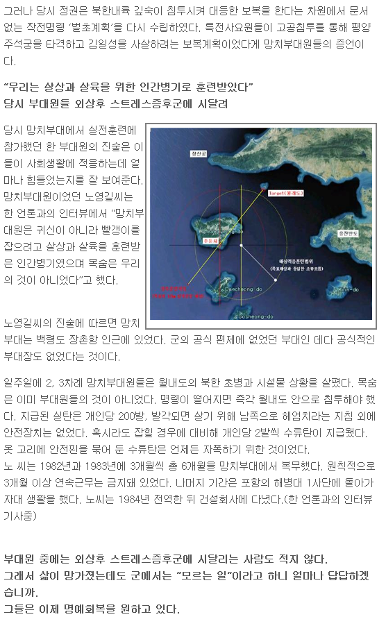 작성자천국은 아름다워 작성자 본인 여부 작성자 작성시간 18.02.17 해병대812북파 망치부대 창설에 대한 증언