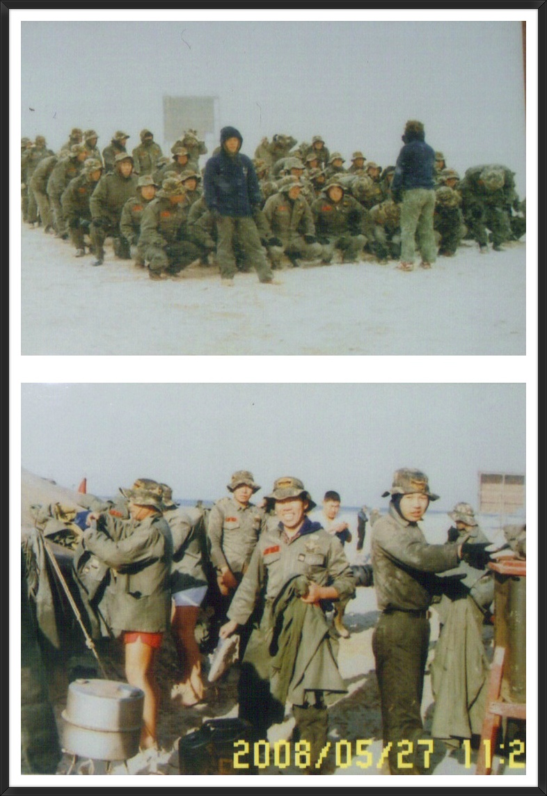 중간사진은i.b.s훈련야영지 칠포해안에서 막사설치작업완료.