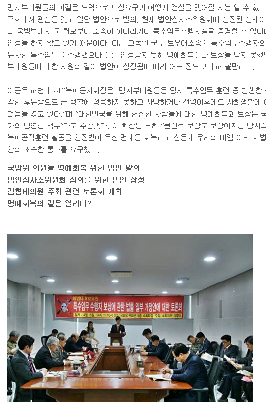 해병대812망치북파 특수임무수행보상에 관한 법률 개정안 토론에 참석한 옛 망치해병들