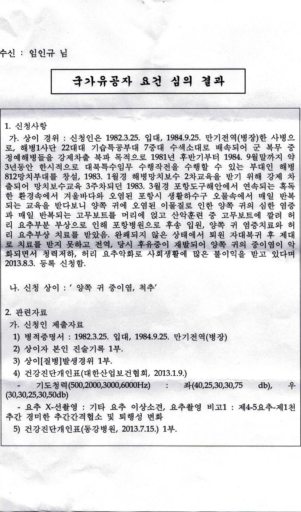 34년전 1982년 해병현역시절 병원입원한 기록관련