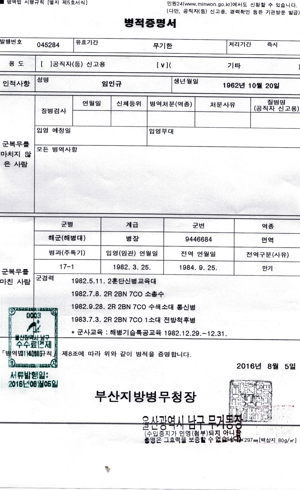 검토한결과(병적기록 키171.몸무게58.형제 관계가)잘못 기록되어 있었고