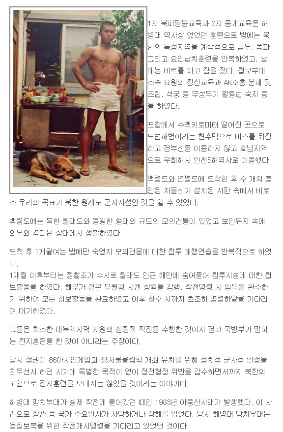 ~82년도1차.2차(백령도.연평도)파견 해병들은 북파임무 수행함
