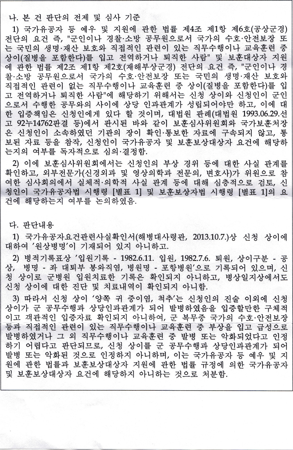국가유공자 요건심의 비해당통보에 대한 중앙행정 심판청구서 답변서을