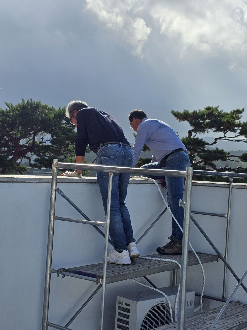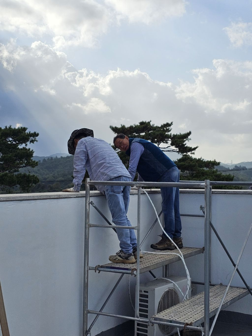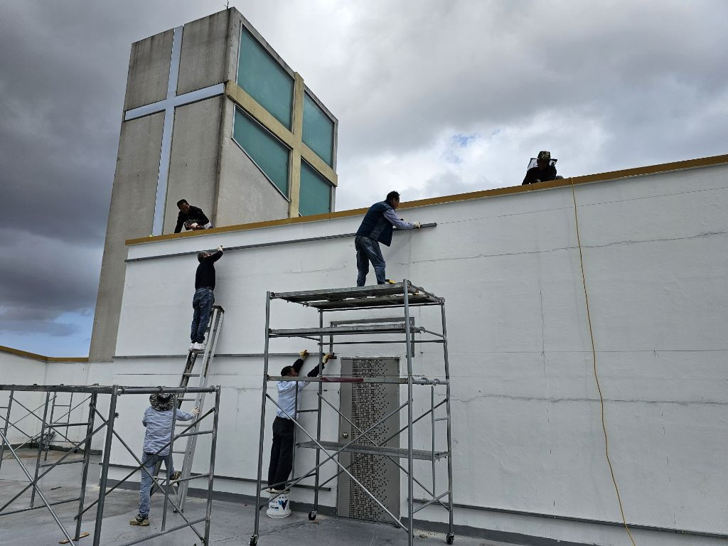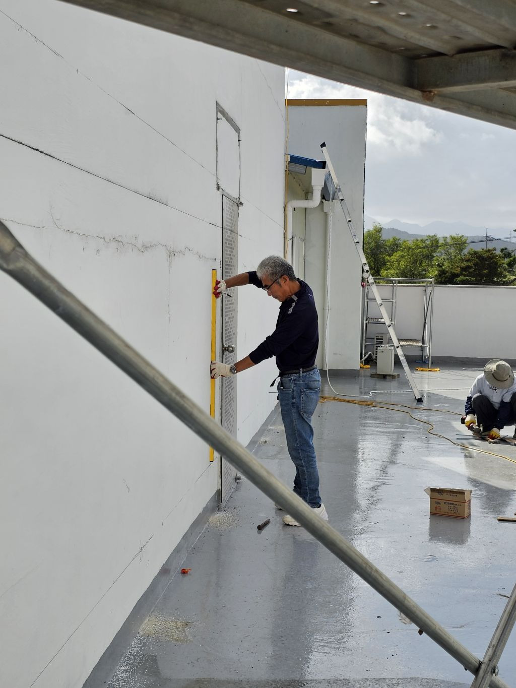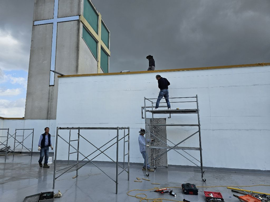비전관에 누수가 있어서 그동안 공사를 많이 했습니다. 하나님께서 건축에 관련된 분들을 많이 보내주셔서 비전관의 옥탑을 완전히 덥는 공사를 합니다. 누수의 원인이 되었기 때문입니다. 또 본당의 미비한 부분도 이번 기회에 모두 작업하여 마무리 하려 합니다. 이를 위해 오늘 남선교회 회원들이 판넬을 붙일 수 있도록 뼈대 작업을 했습니다. 징크판넬로 완전히 싸고 지붕까지 덮어서 누수를 완전히 잡을 예정입니다. 김중섭 권사님과 저만 빼고 모두 건축 일을 하시던 분들이라 일찍 공사가 마무리가 되었습니다. 모두 수고하셨습니다.